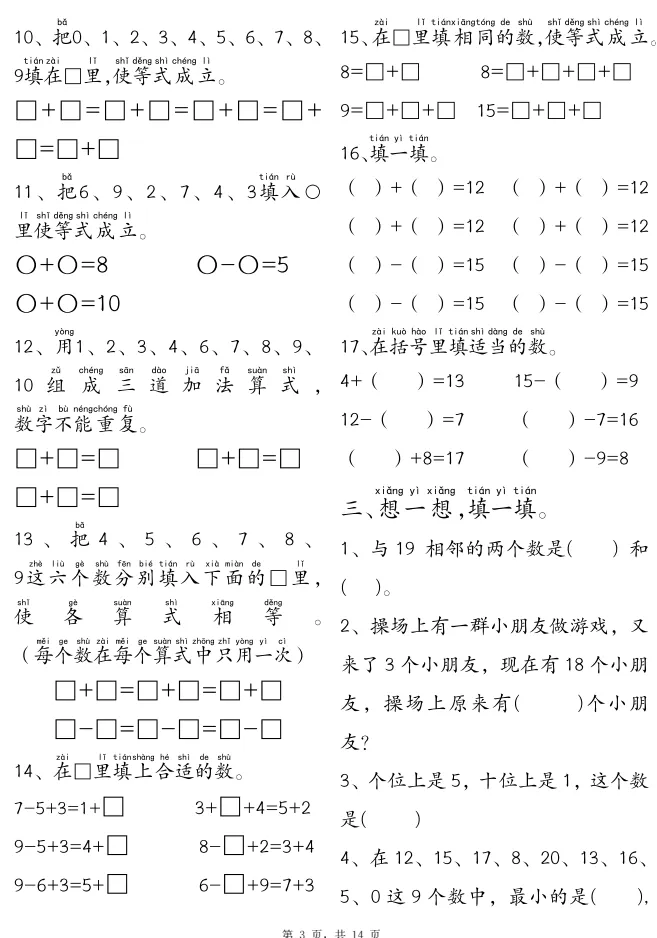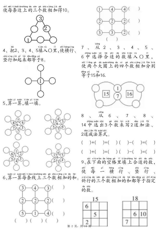 2026寒假必备:一年级上册数学思维训练可打印下载
