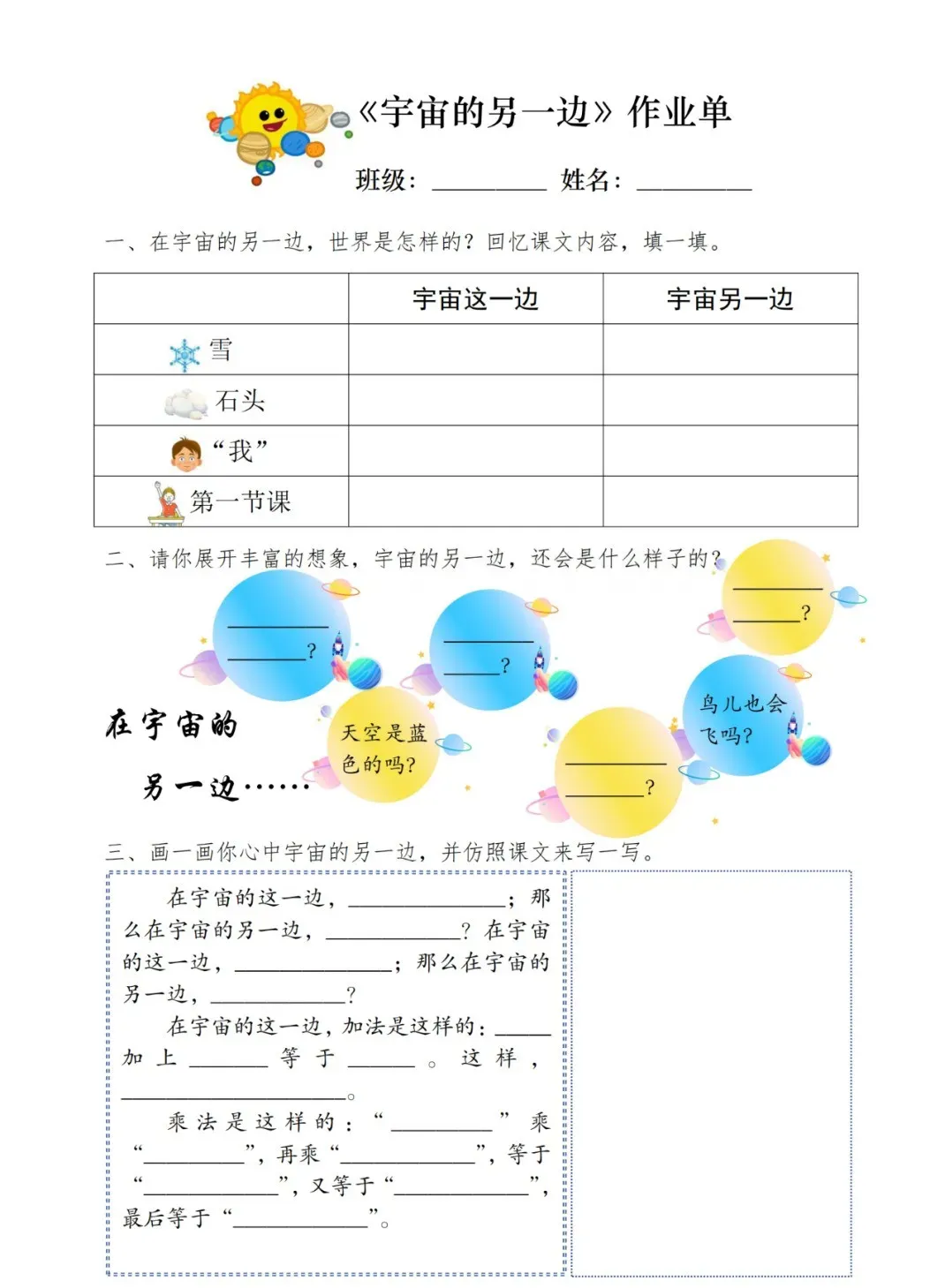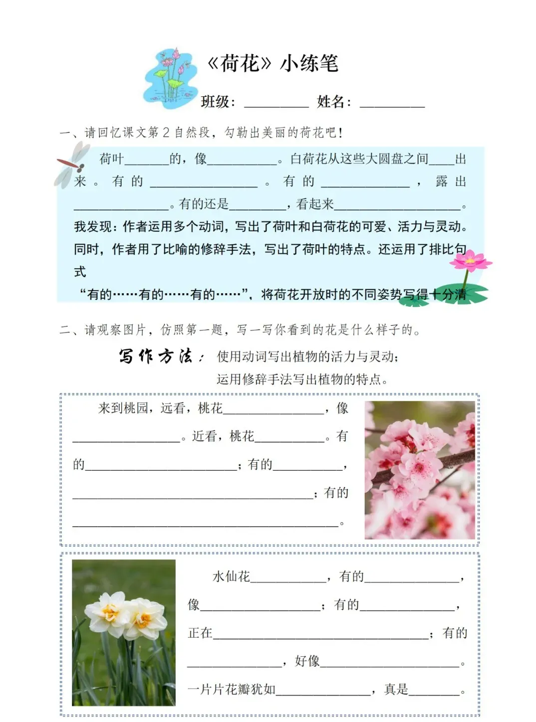 三年级下册语文每课作业单【小练笔】(电子版可打印)