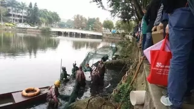 因天气冷,华工湖里的鱼怕冷死,所以请了捕捞队,捞上来后部分送到饭堂,免费煮给大家吃……