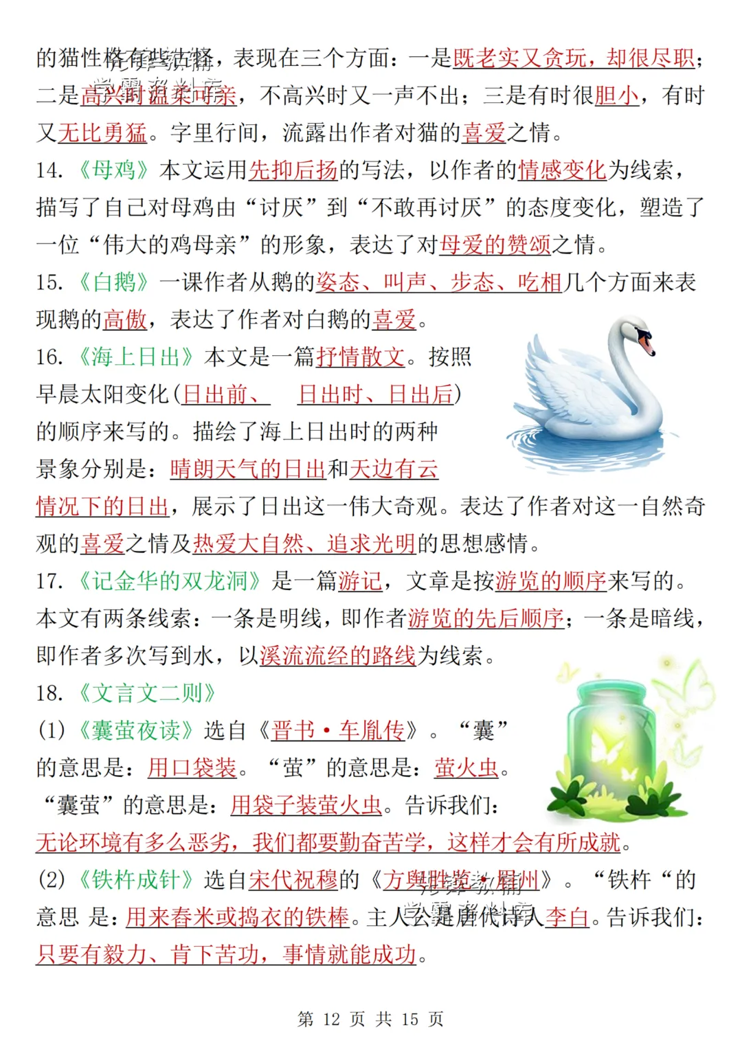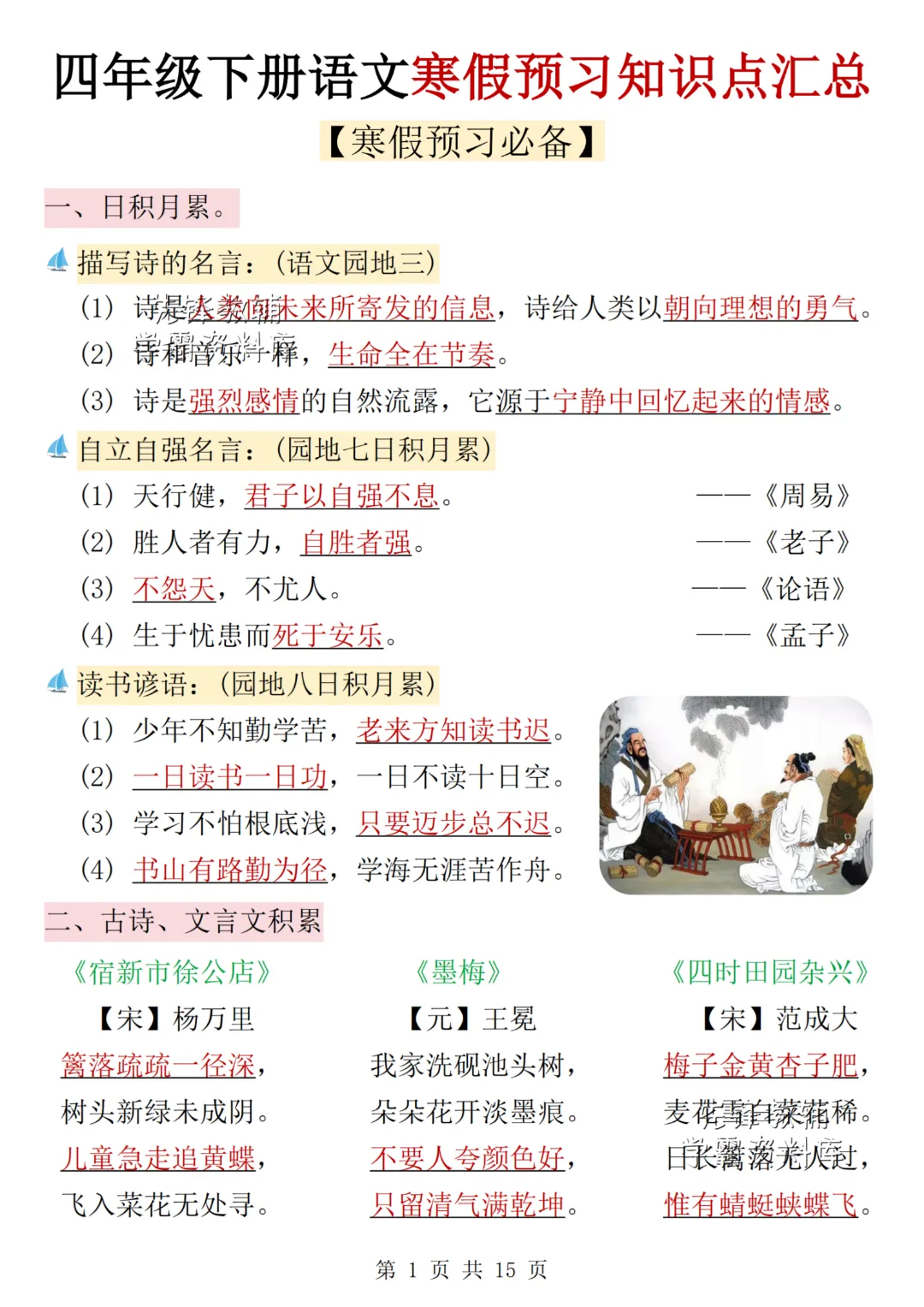 今日分享2026年《四年级下册语文寒假知识点汇总》电子版可打印。
