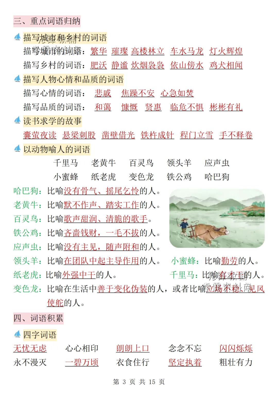 四年级下册的词汇量大、难度高,且考试中对词语的理解和运用要求极高。知识点汇总能帮助孩子告别低效的“地毯式”复习。