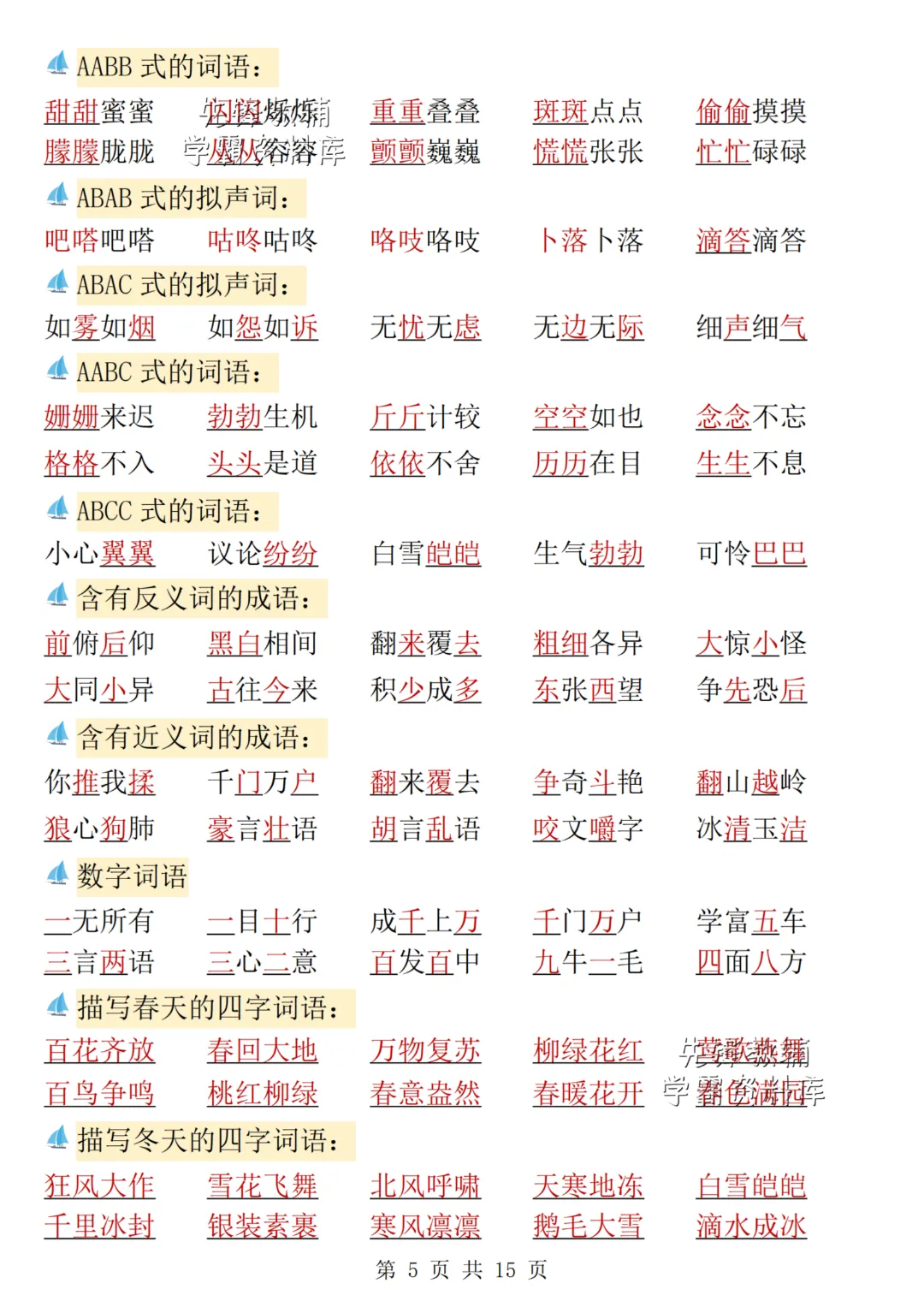 - 分类积累“高级词汇”: 汇总会将 ABB 式(颤巍巍)、AABB 式(闪闪烁烁)、含反义词的成语(翻山越岭)等分类整理。这些词汇是提升作文语言美感的“利器”,也是阅读理解中赏析句子的关键。