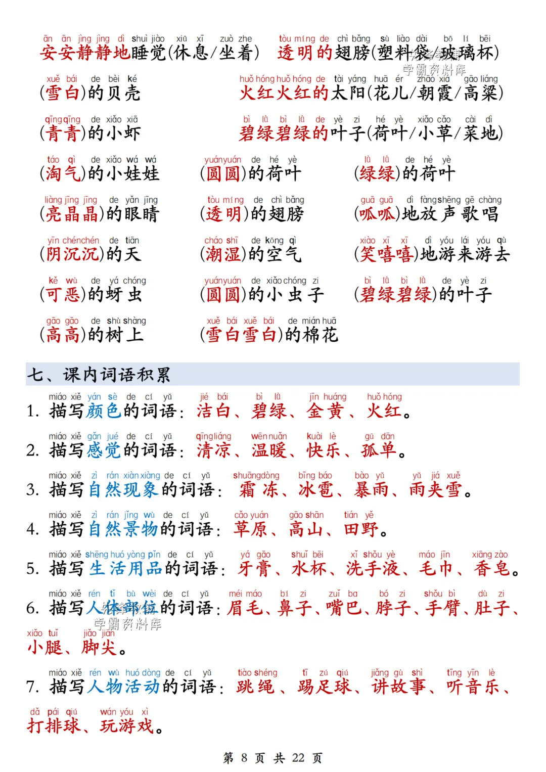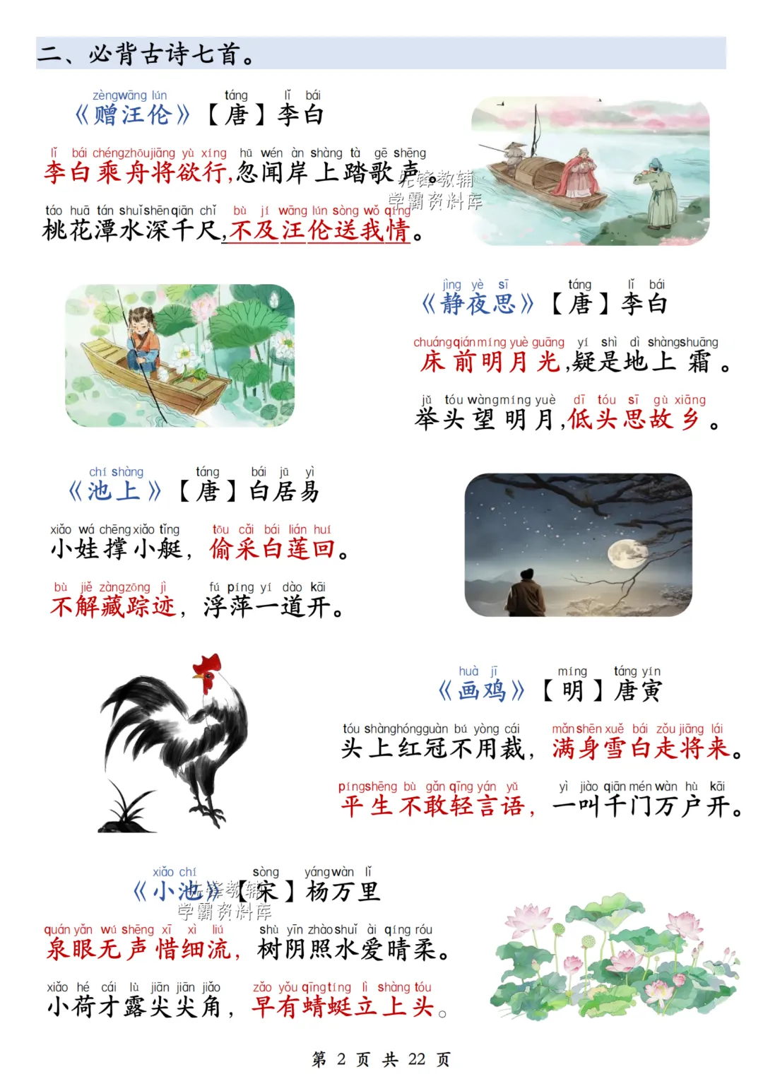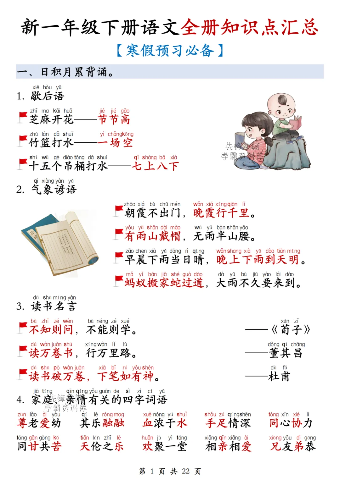 今日分享2026年《一年级下册语文全册知识点汇总》电子版可打印。共20页