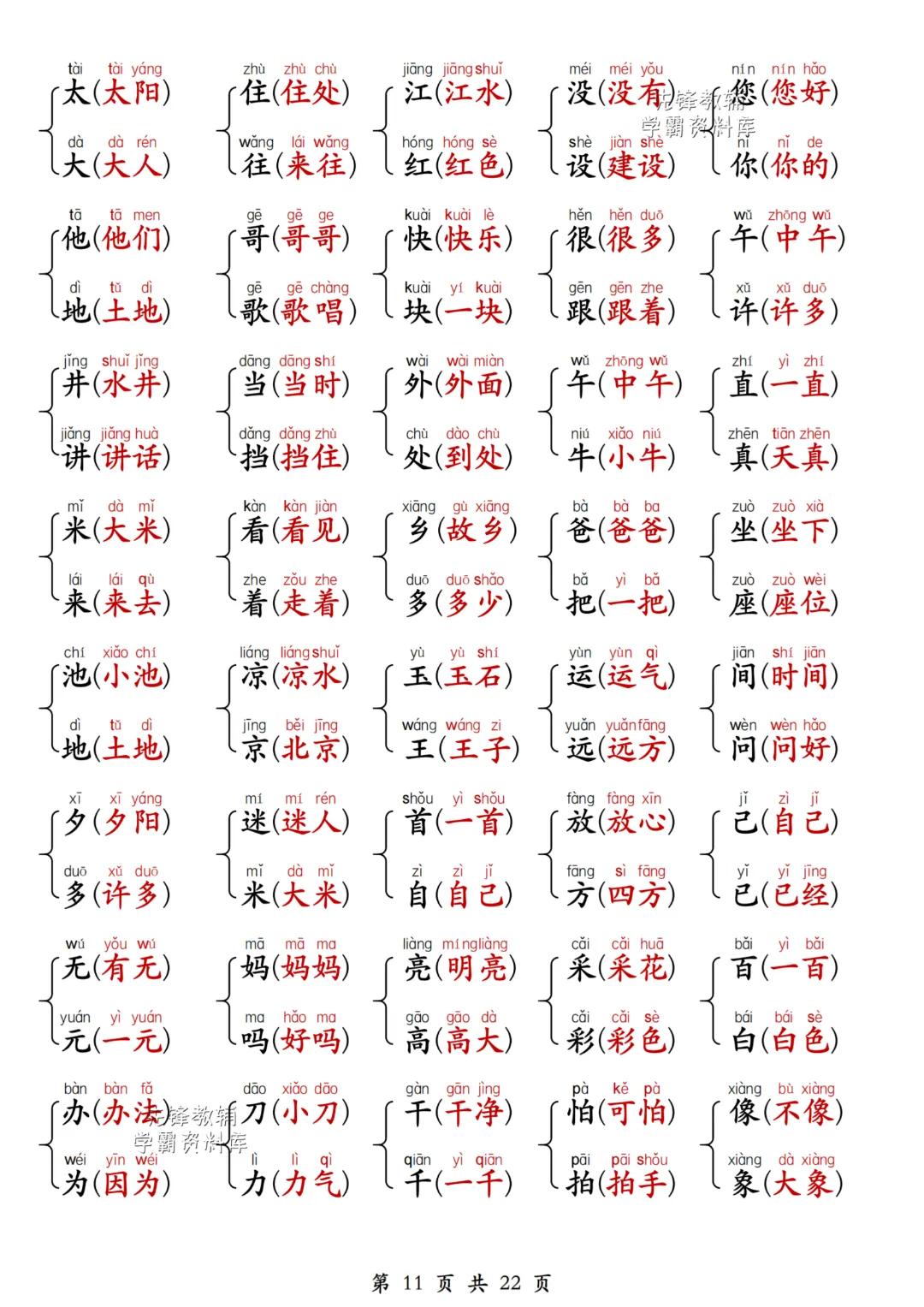 - 从零散到结构: 教材采用了“双线组元”的编排逻辑,既有人文主题(如春天、家人、伙伴),又有语文要素(如识字方法、朗读技巧)。知识点汇总能将这些分散在各个单元的内容(如拼音、生字、词语、句子)串联起来,帮助孩子在脑海中建立一张清晰的“知识地图”。