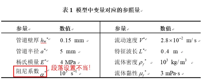 当表格中出现复合型单位时,与一般的文字编辑方式相同,可以用word自带的上/下标格式(快捷键为 上标:同时按Ctrl, Shift, +;下标:同时按Ctrl, =;重复一遍操作可取消上/下标),或者使用Mathtype软件插入内联公式(快捷键:Ctrl+Alt+Q)。使用Mathtype插入公式时,可能出现图9所示的字符水平方向错位问题。这是由于段落设置不当造成的。