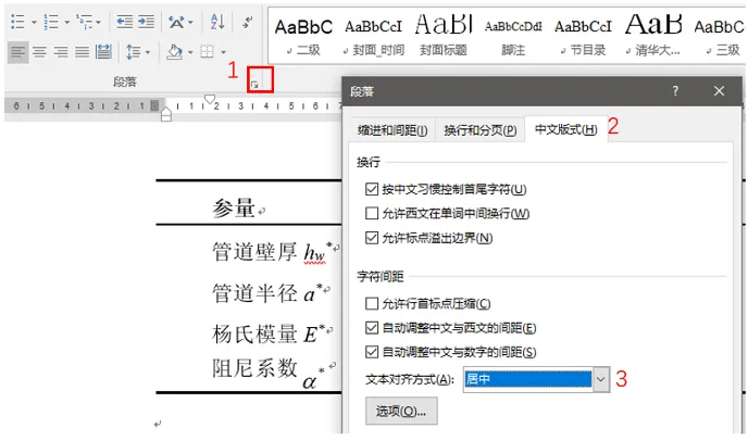 处理方法很简单。如图10所示,选中该单元格全部字符,点开“段落”的扩展菜单,选择“中文板式”标签,将“文本对齐方式”改为“居中”。读者也可根据实际情况选择其他方式对齐。