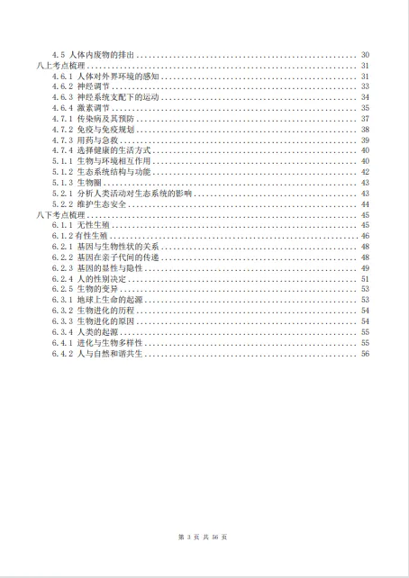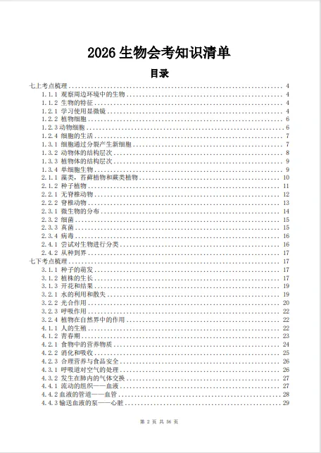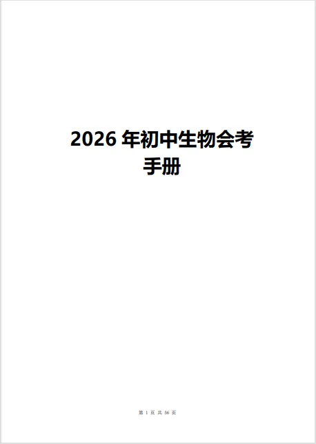 2026年《初中生物会考手册》共56页,电子版可下载打印