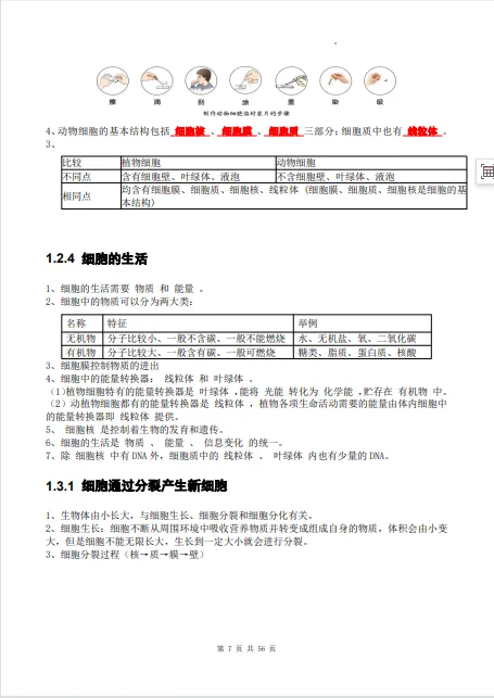 2026年《初中生物会考手册》共56页,电子版可下载打印,按会考大纲整合七八年级全册核心考点,覆盖细胞、生态、人体生理、遗传、实验等所有模块。帮你高效备考、精准提分、规范答题、快速查漏,把零散知识系统化,大幅节省复习时间。