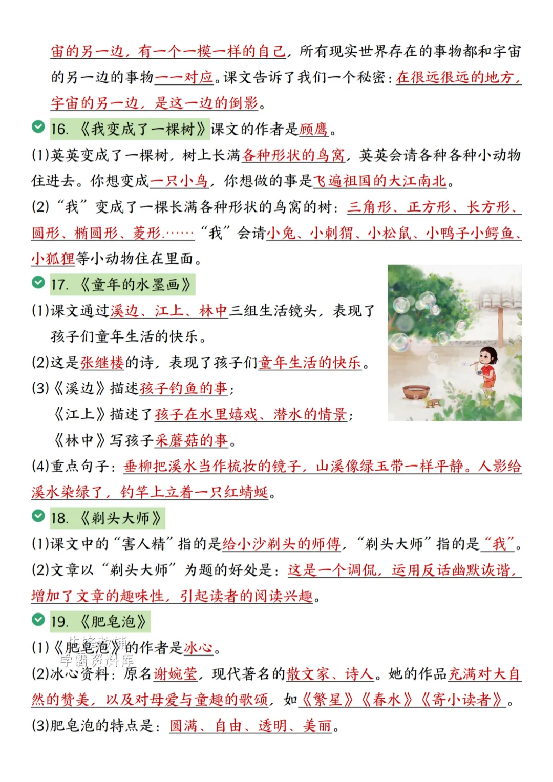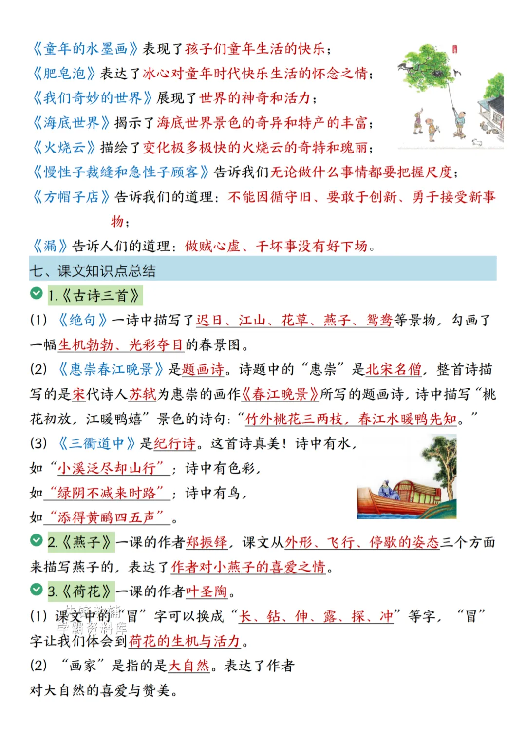 新版三年级下册语文全册高频考点归纳(电子版可打印)