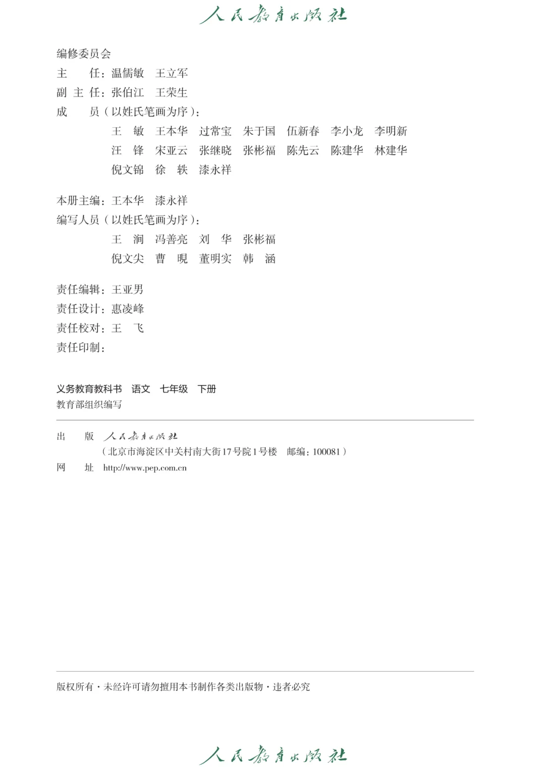 【新版教科书】2024新部编版(人教版)语文七年级下册电子课本||官方高清正式版PDF+文末免费下载