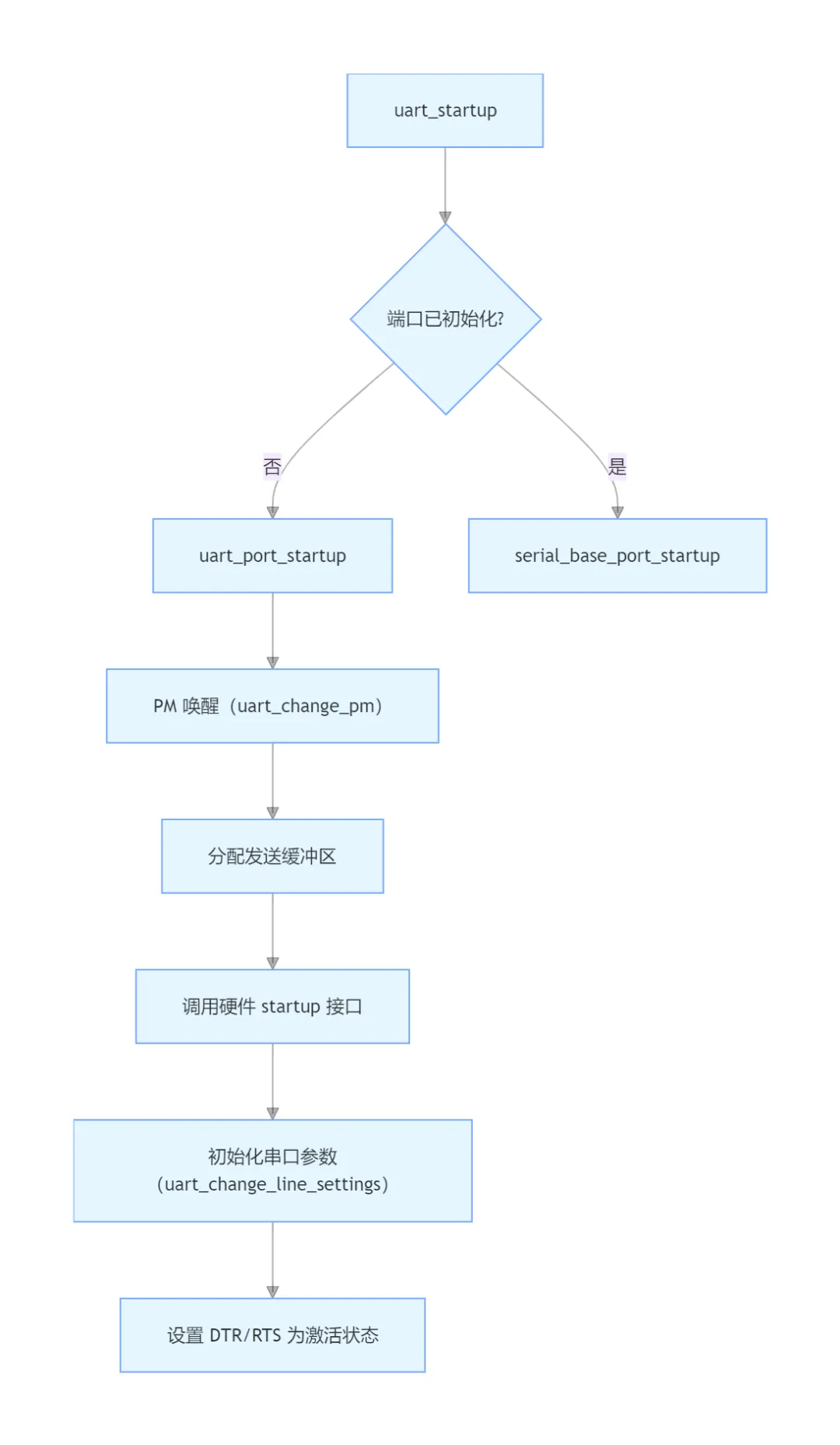 __uart_start:核心发送启动逻辑,包含 PM 运行时管理(确保硬件处于激活状态)。
