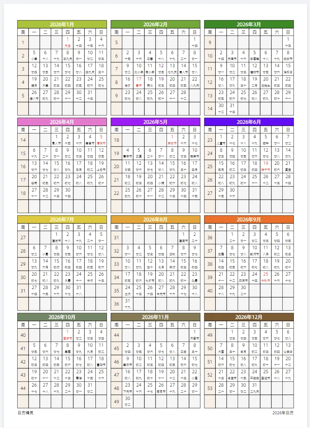 2026年全年高清日历表(可下载打印) 资料无偿分享,点击底部左下方“阅读原文”,进入下载页面! 部分内容分享 (文末查看领取方式) 资料下载链接: https://pan.quark.cn/s/5547e63d8b25 下载方法: 复制链接,打开夸克APP,转存就可以下载了 点击左下角阅读原文获取资料 记得给个点赞和在看