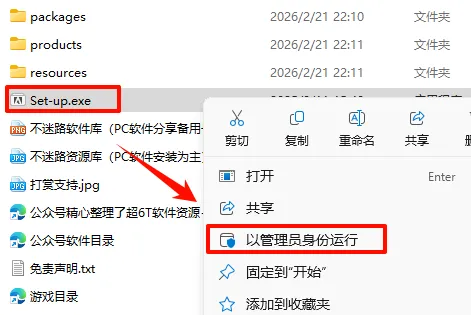2.打开刚刚解压的文件夹,鼠标右键点击“Setup.exe”选择“以管理员身份运行“
