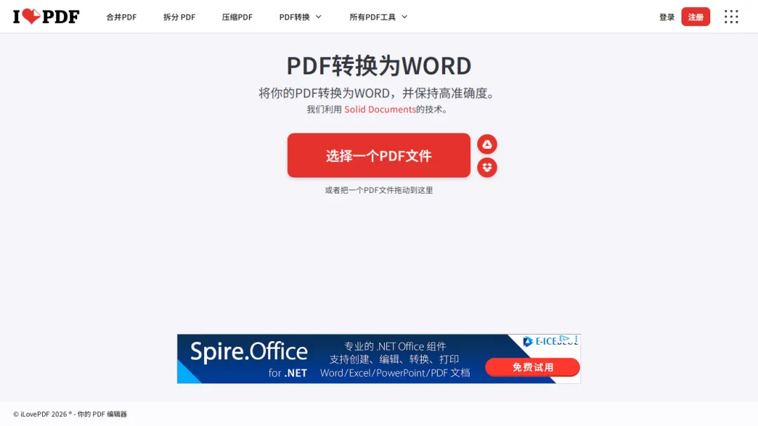 这是一家创建于2010年,总部位于西班牙巴塞罗那的软件公司提供的免费在线pdf工具,这款在线pdf工具网站已成为访问次数最多的PDF网站之一,帮助了全球非常多人,也提供中文支持。
