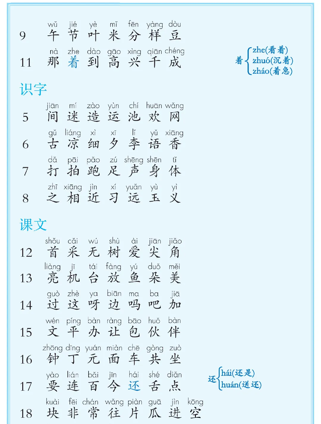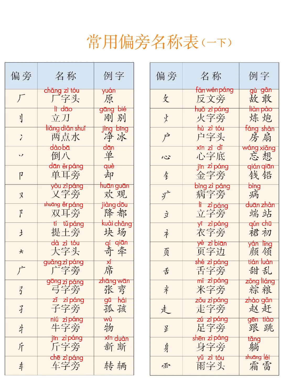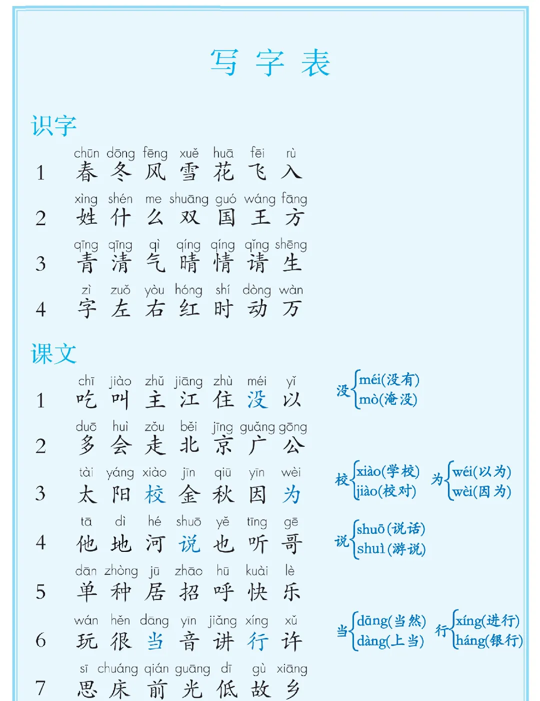 新版一年级下册语文《课后三表汇总》(注音版),高清电子版可打印!