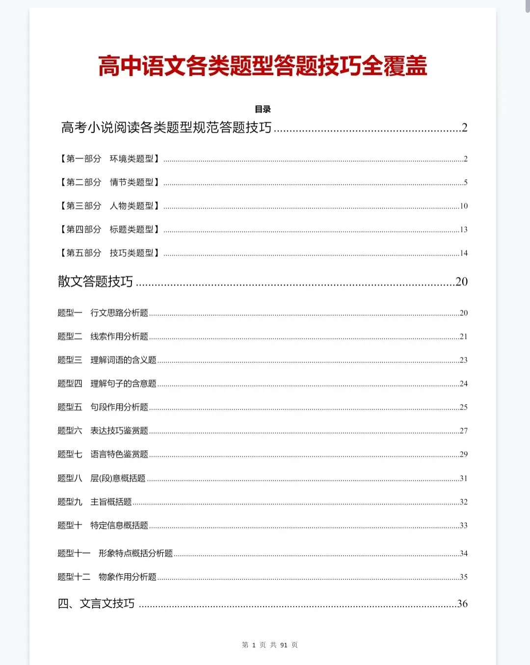 高中语文各类题型答题技巧全覆盖,文档版,可下载打印