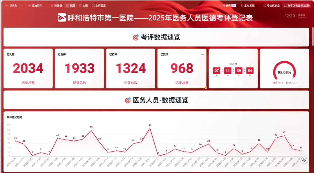 护理质量控制是医院发展的生命线,过去呼和浩特市第一医院护理部每月需核算全院100多项质控指标,管理人员深陷“报表丛林”,人工核算不仅耗时4-5天,还存在差错风险。通过WPS 365多维表格,医院搭建起护理质量指标自动化管理应用,将孤立静态的表格转化为智能工具,实现粘贴即运算、分钟级出结果、异常数据预警、仪表自动分析四大突破。如今,管理人员只需粘贴相关数据,系统便会自动运行预设逻辑,原本4-5天的工作量可缩短至分钟级,异常数据会自动推送至负责人,推动工作模式从“人找任务”转向“任务推人”,仪表盘还能一键生成季报、年报,为管理决策提供数据支撑。
