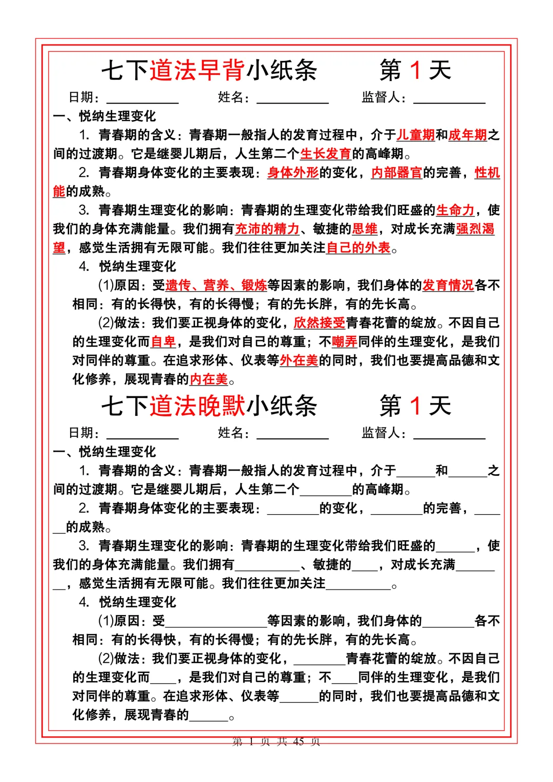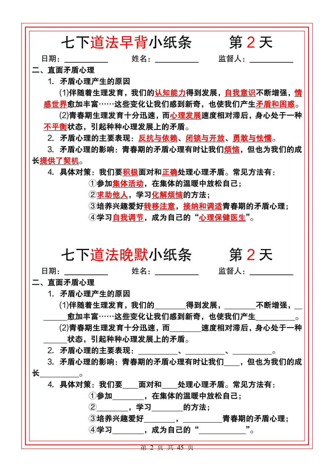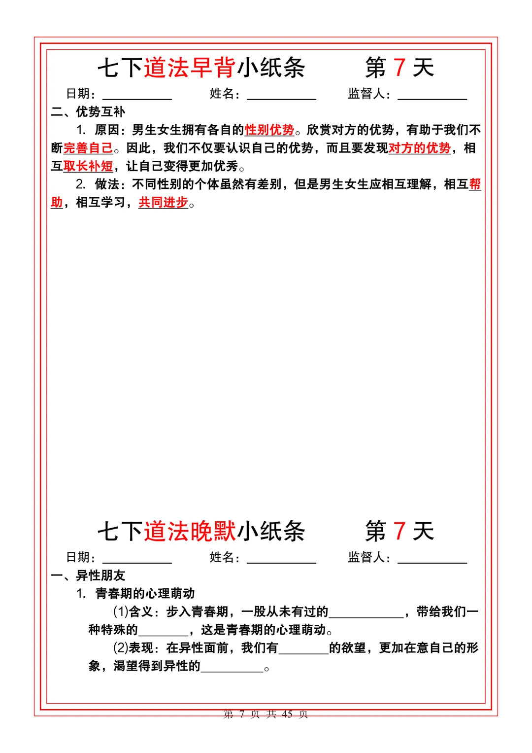 本站文章均为手工撰写未经允许谢绝转载:夜雨聆风 » 七下道法早背晚默小纸条(可打印)