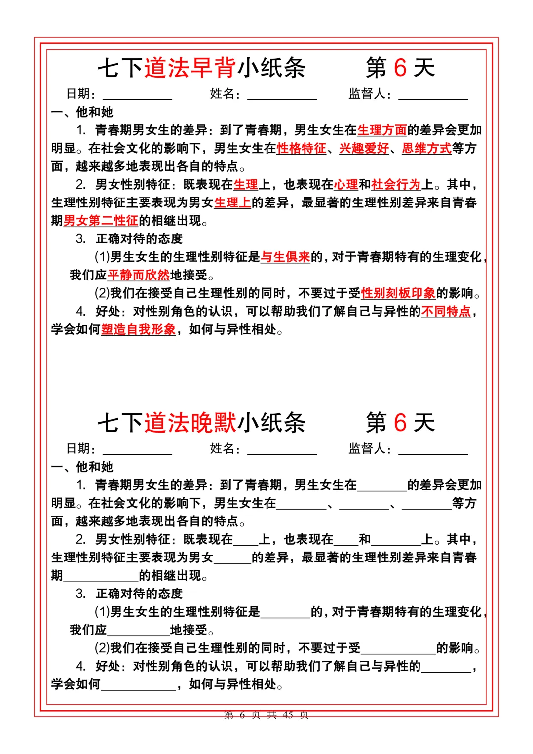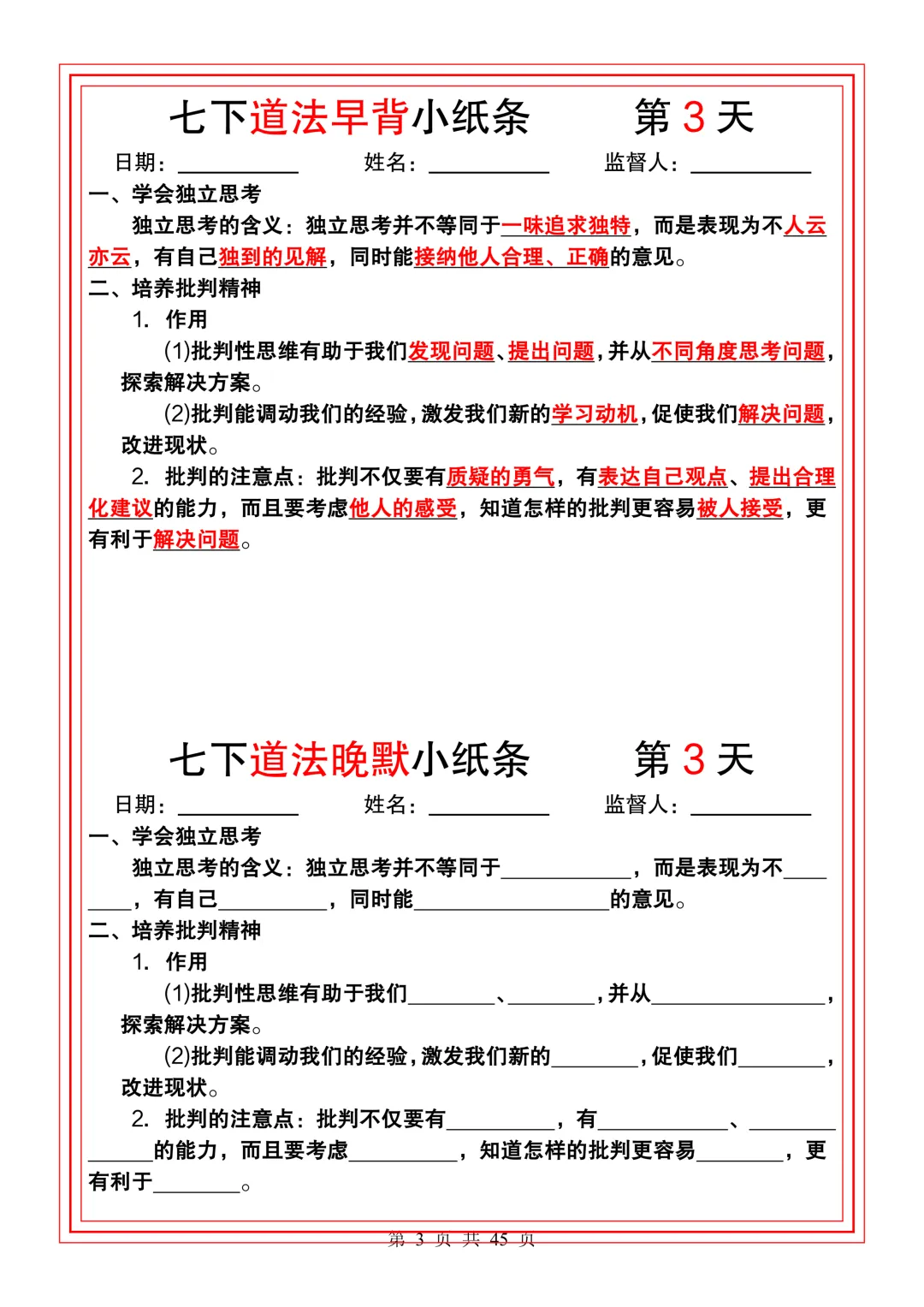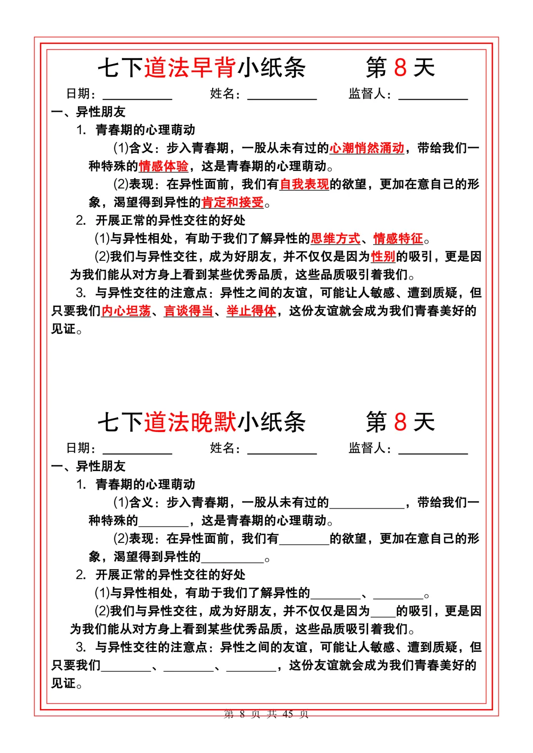 本站文章均为手工撰写未经允许谢绝转载:夜雨聆风 » 七下道法早背晚默小纸条(可打印)