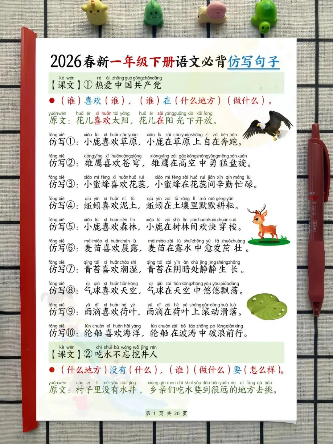 一年级下册语文必背内容可打印(课文必背+仿写句子+必背古诗词),寒假预习必备,pdf