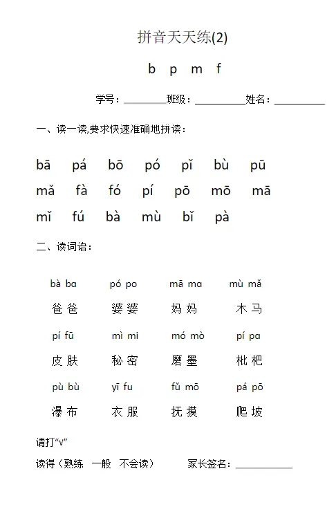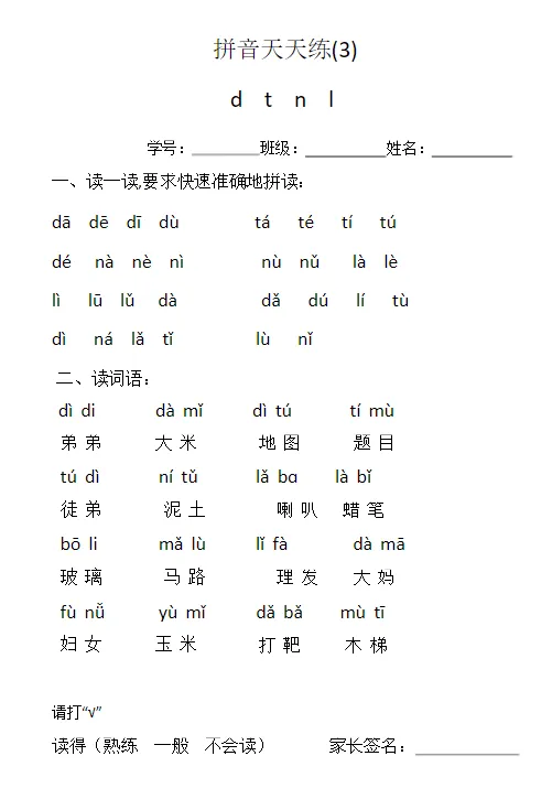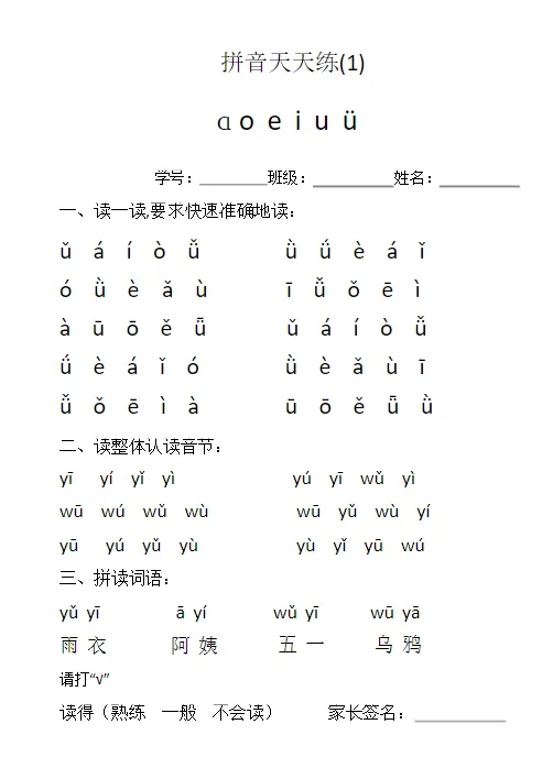 拼音天天练免费可打印板/幼小衔接拼音启蒙