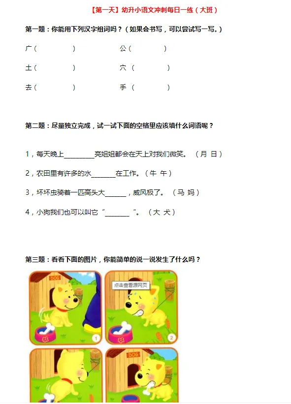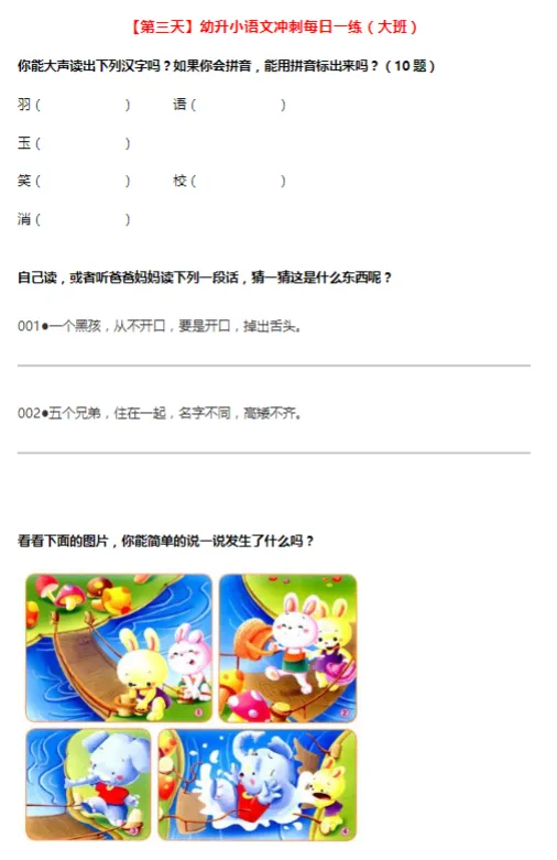 摩比语文大班100天练习册可打印