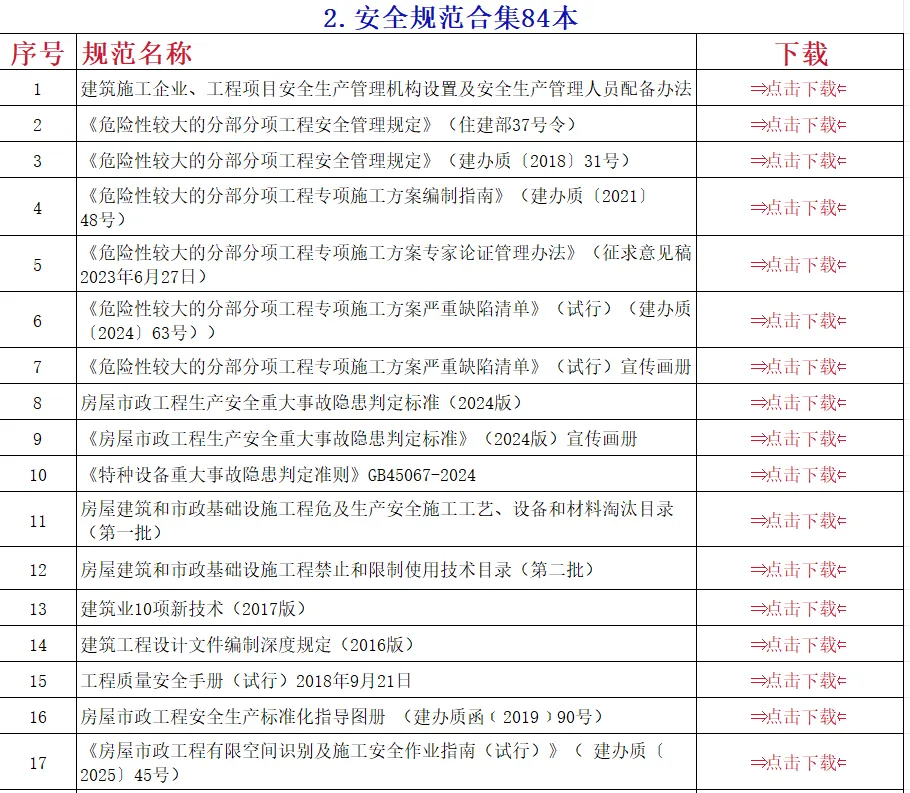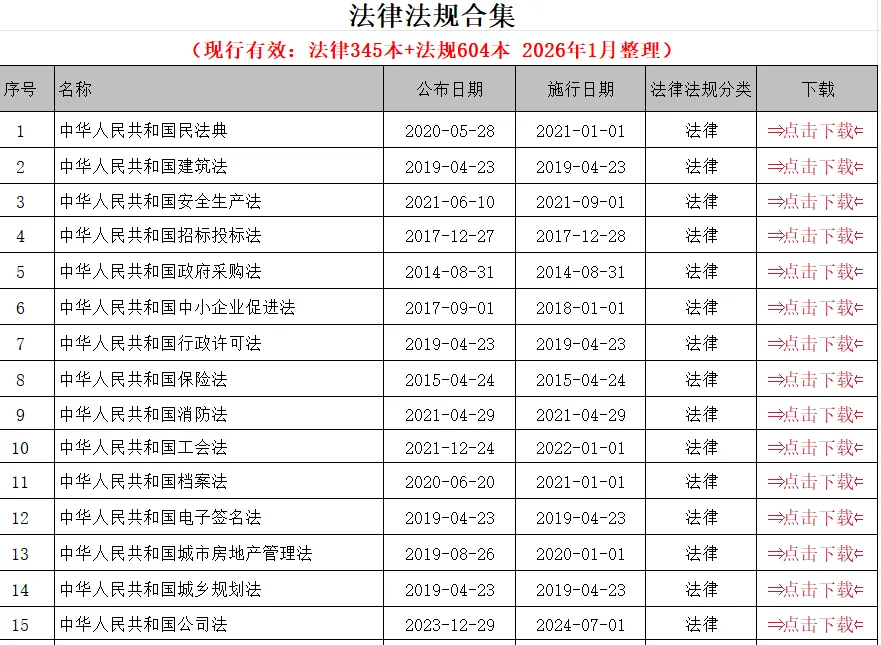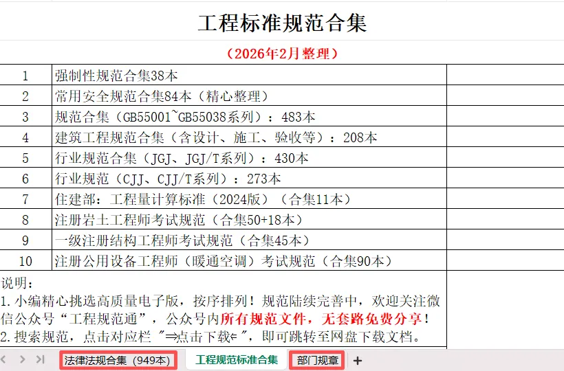 送您电子版合集:法律法规949本+工程标准规范1730本+部门规章160本(分类清晰、精心整理,免费自取)