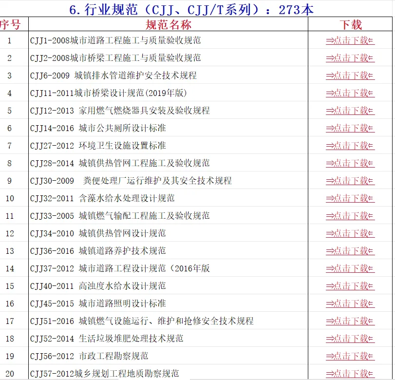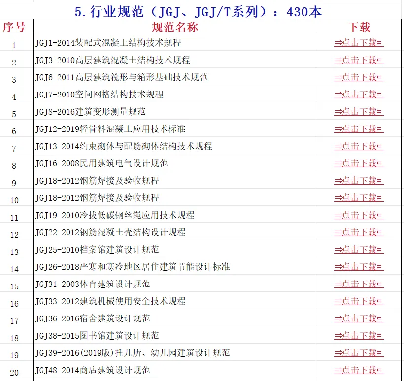 送您电子版合集,包括以下规范:(部分截图,文末Excel文档自取)