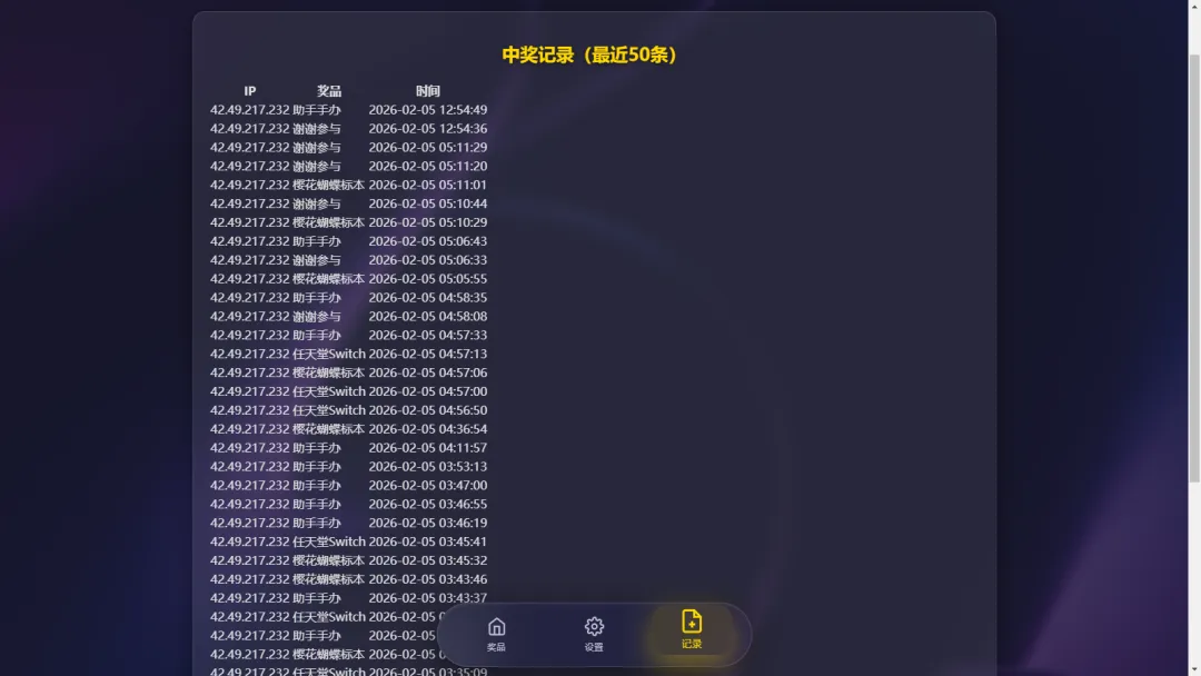IP 限制抽奖次数(后台可调 1 次 / 多次 / 无限)