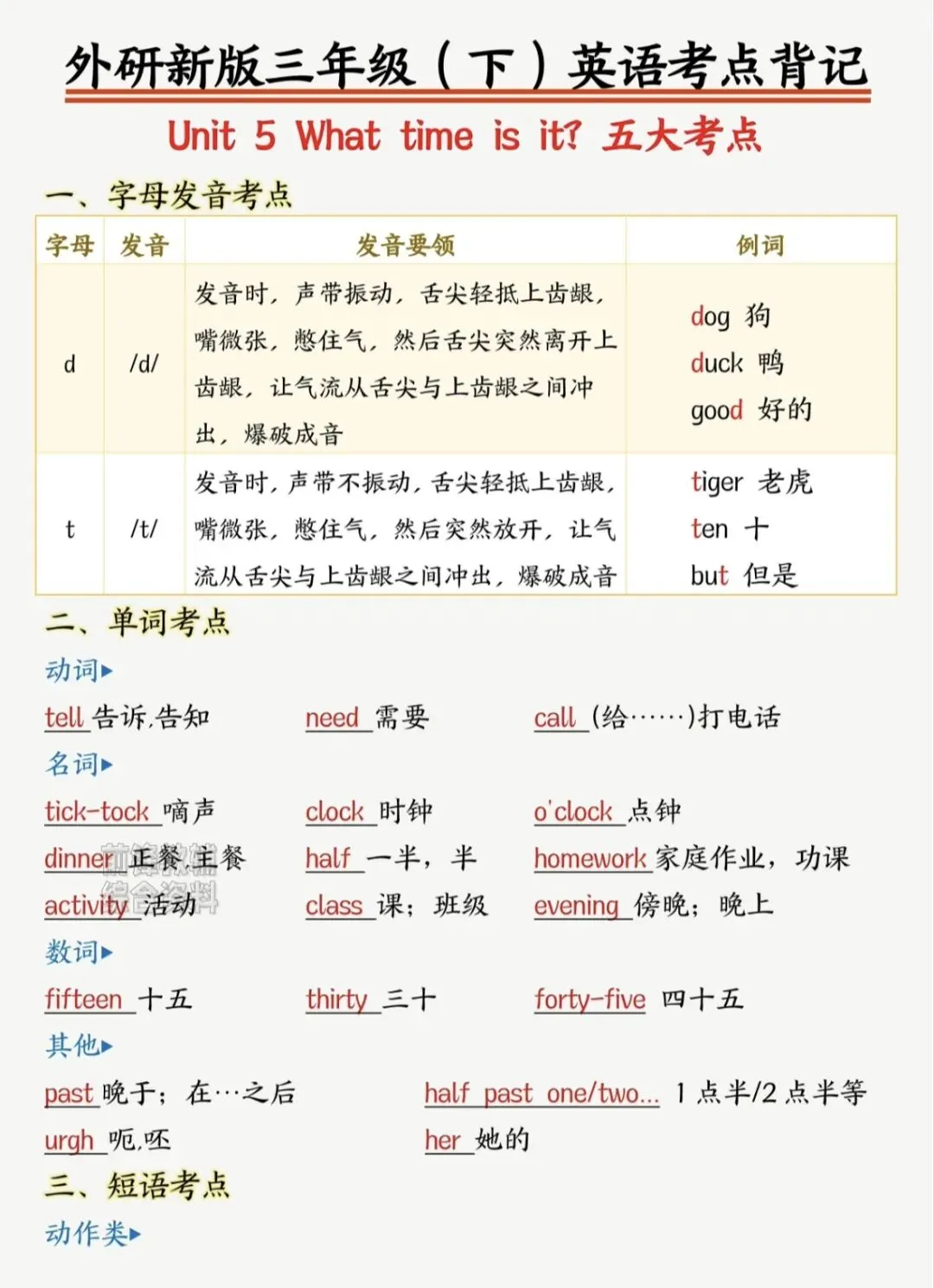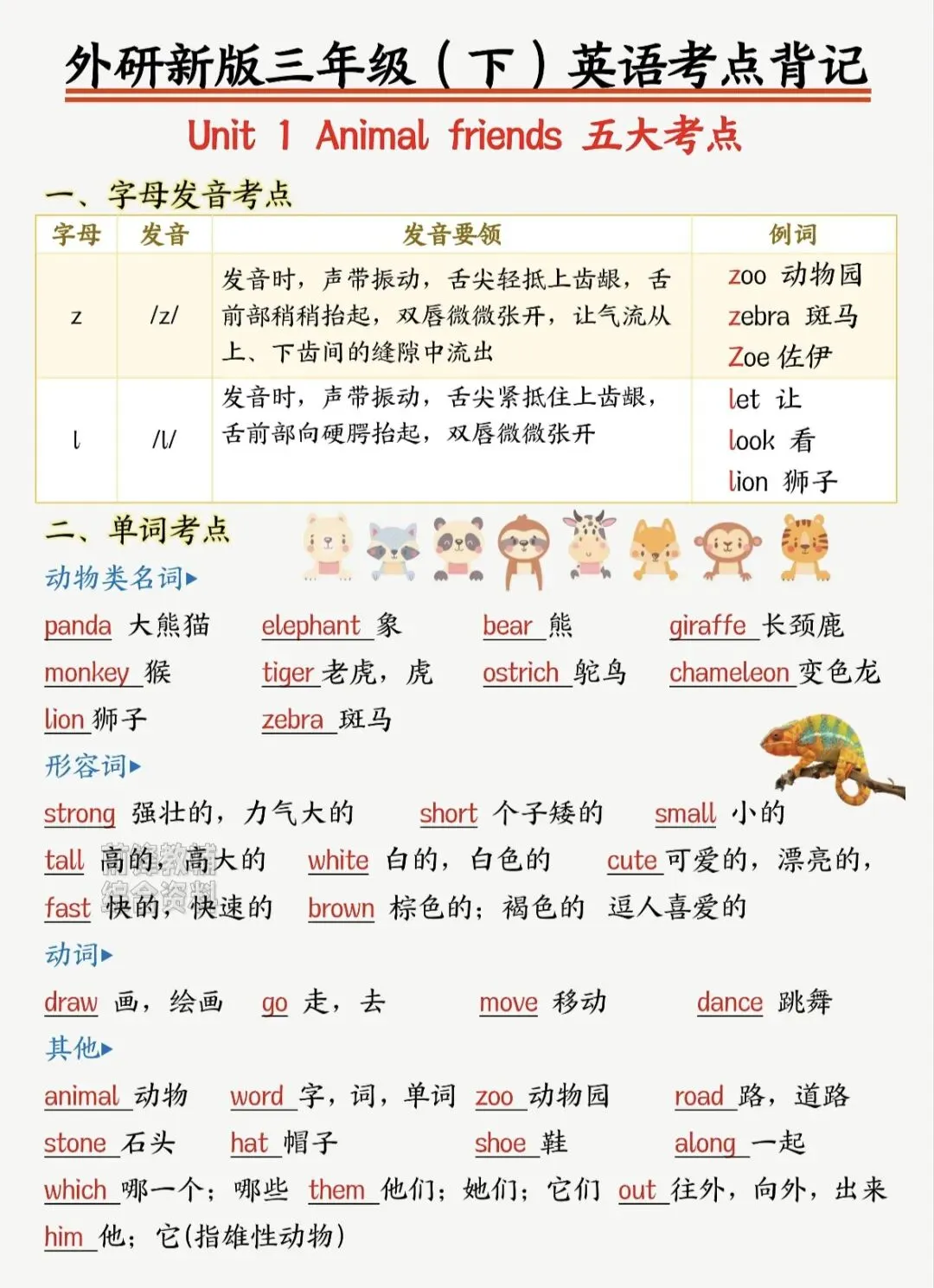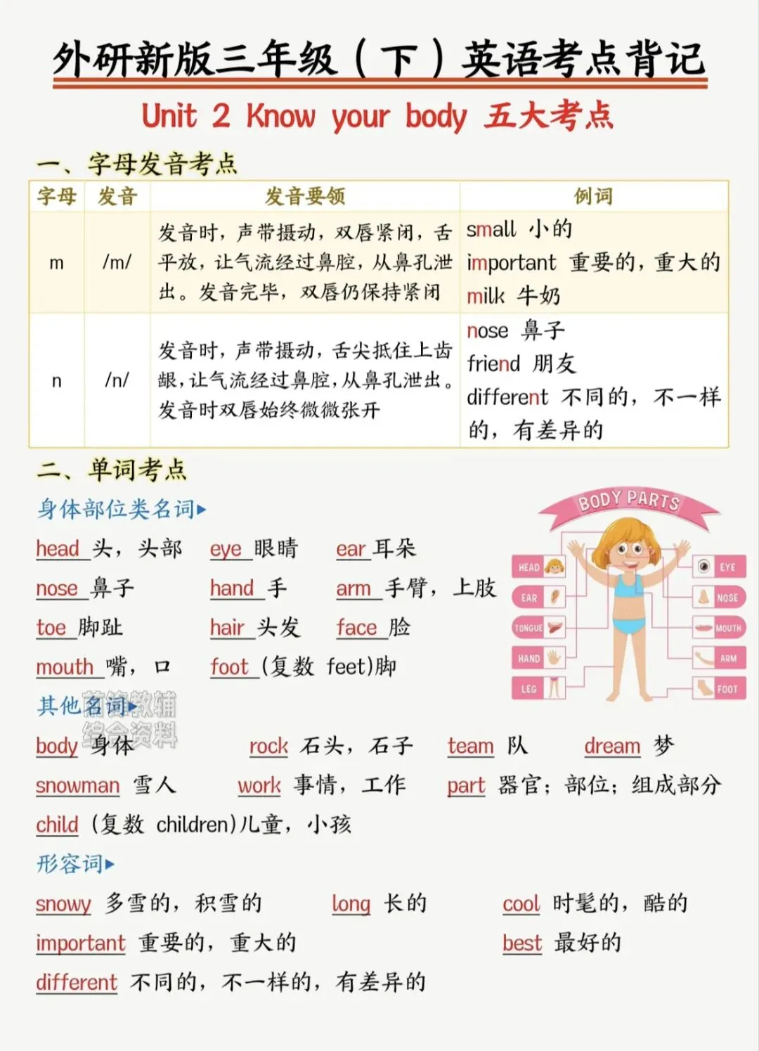 三年级下册英语外研版1-6单元考点背记(电子版可打印)