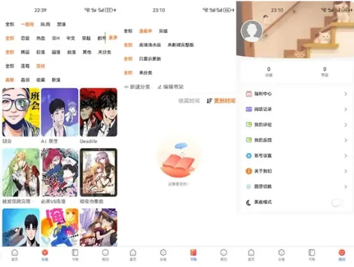 漫天星是一款老牌漫画神器,老版本已经失效,现在是复活版,UI界面同以前的喵妃,资源多,中日韩漫画实时更新,男女频切换流畅,国漫占比较多!