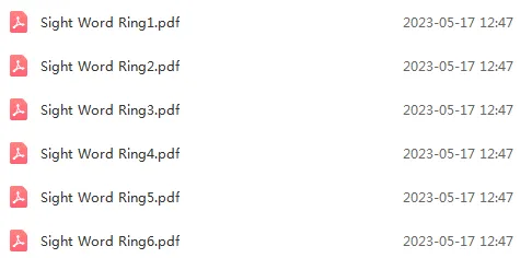 今天给大家分享一套高频词随身卡Sight Word Rings,一共有六册,原版高清PDF,可以直接打印,过塑后制作成随身卡,是一套非常好的英语启蒙高频词材料。