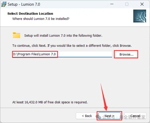 5、软件默认安装在C盘,可自定义更改软件安装位置,这里小编选择安装在D盘;点击【Next】