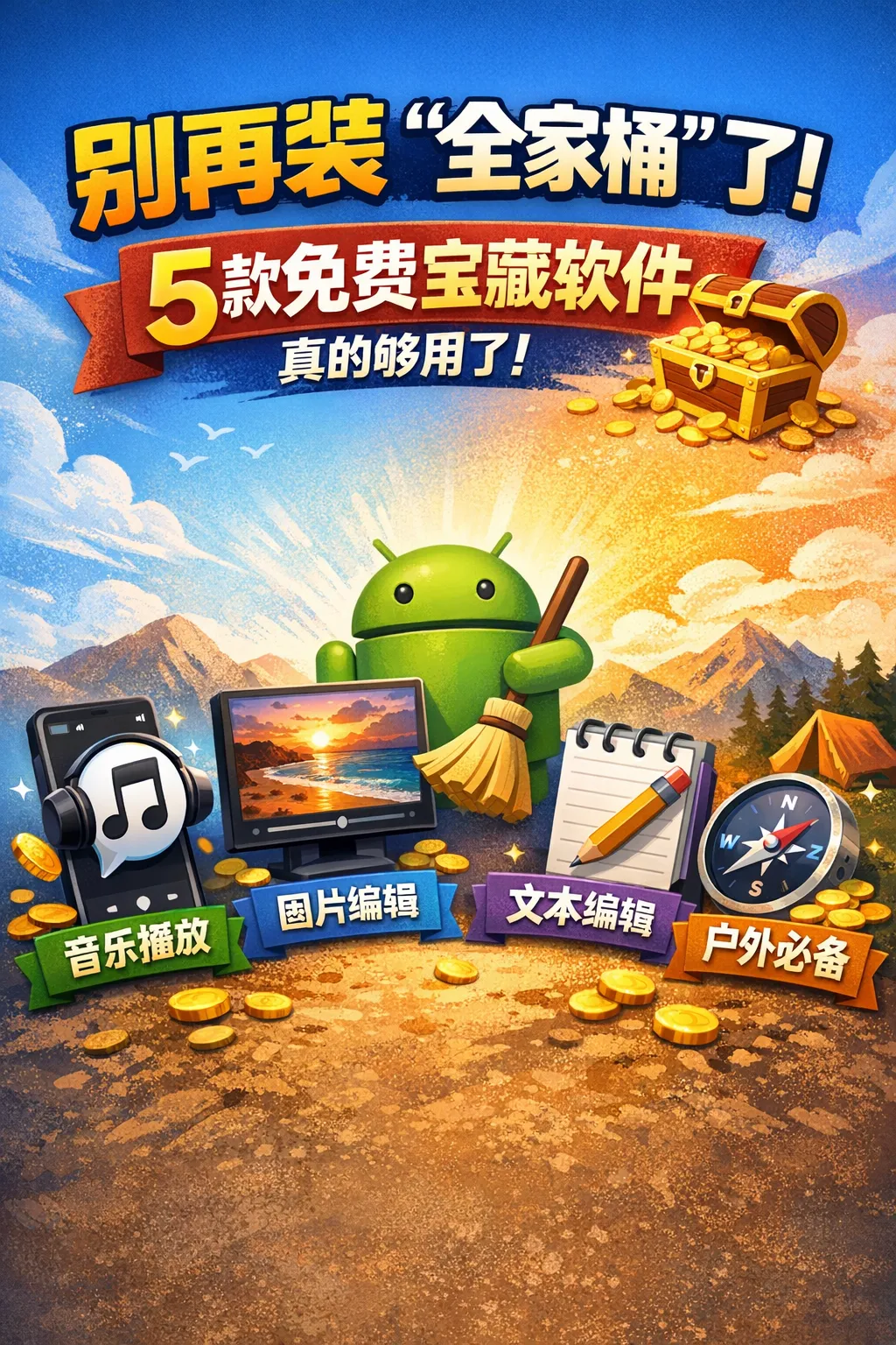 今天给大家精心挑选 5 款真正良心、官方可下载、完全免费、长期可用的软件工具。涵盖:🎵音乐播放、📷图片处理、🧹系统清理、📝文本编辑、🏕️户外辅助。