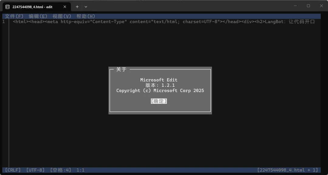 支持系统:Windows开源地址:https://github.com/microsoft/edit