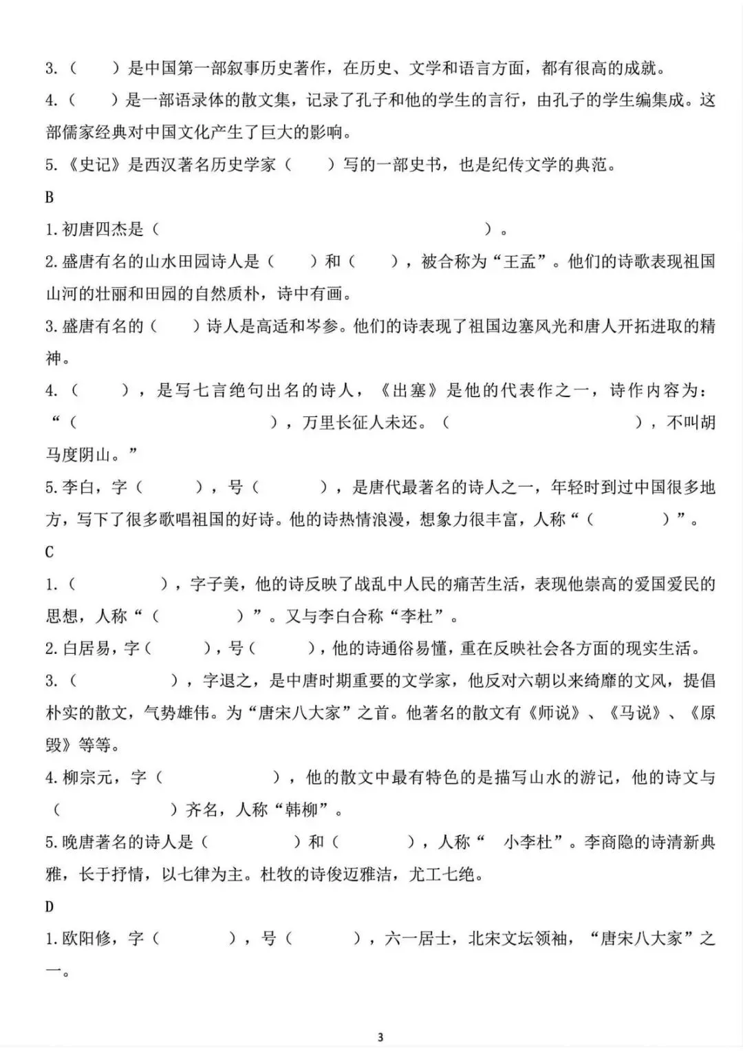 这份资料精准提炼课本内外的核心文学常识,涵盖作者信息、作品背景、经典名句等,内容全面又系统。让孩子在短时间内掌握重点,轻松应对考试。