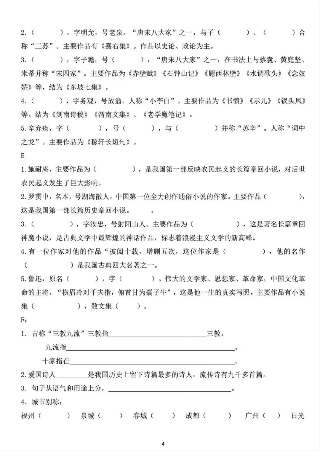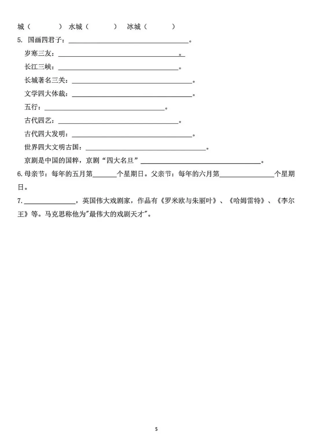 六年级下册语文重点文学常识小升初必备(电子版可打印附答案)