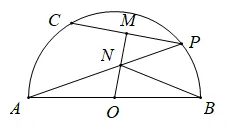 16. 如图,在以AB为直径的半圆O中,C是半圆的三等分点,点P是弧BC上一动点,连接CP,AP,作OM垂直CP交AP于N,连接BN,若AB=12,则NB的最小值是_______.