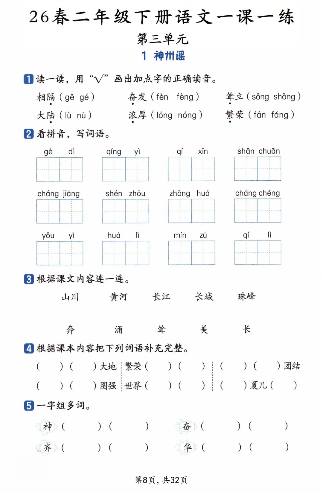 26春二年级下册语文《一课一练》,电子版可打印