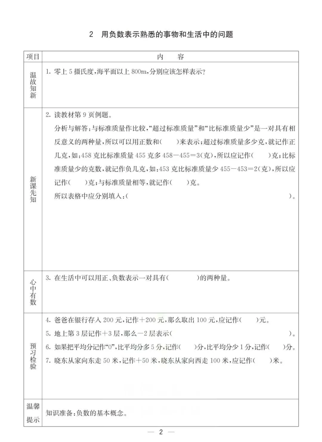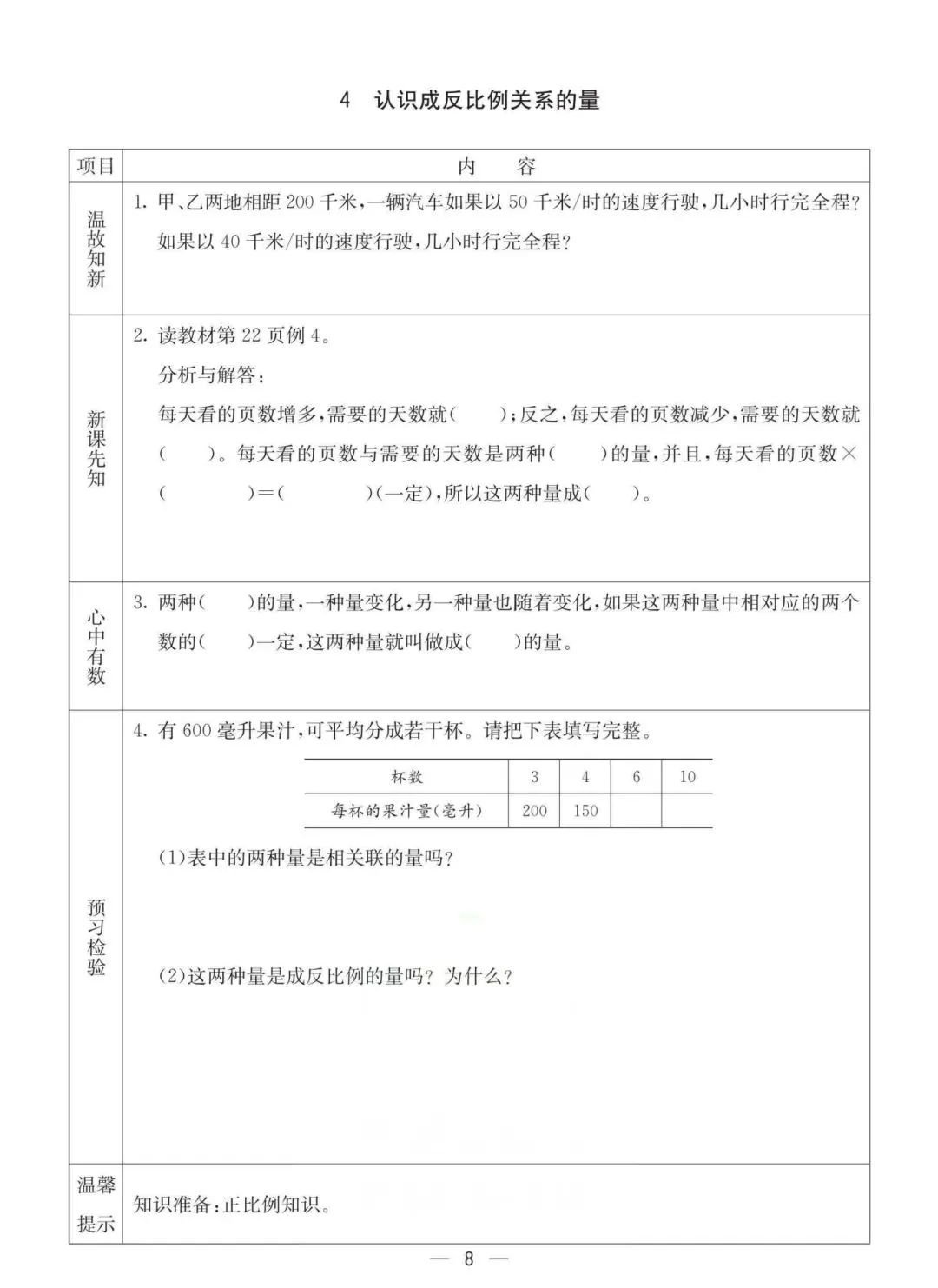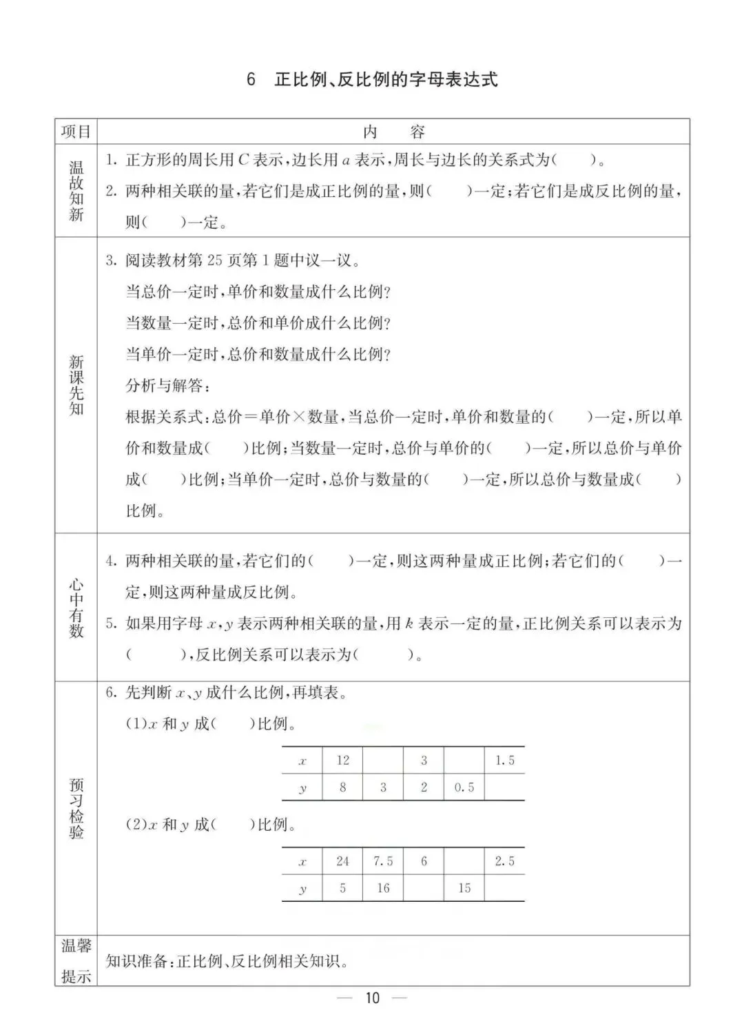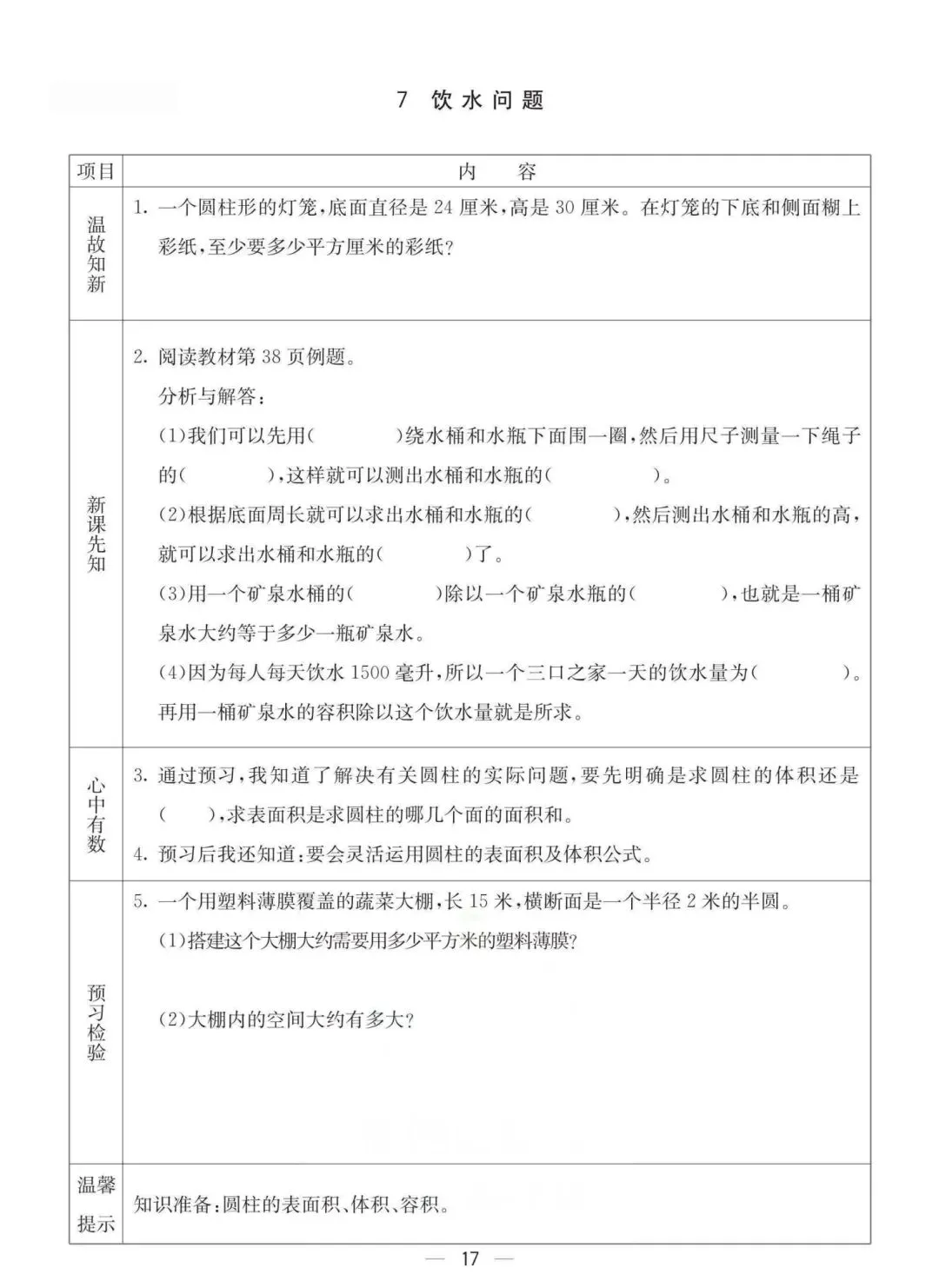 六年级下册冀教版数学《课时预习卡》,电子版可打印