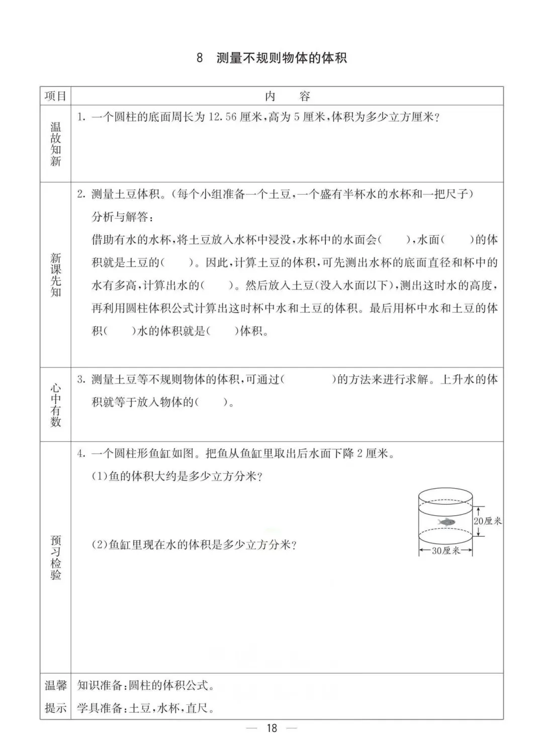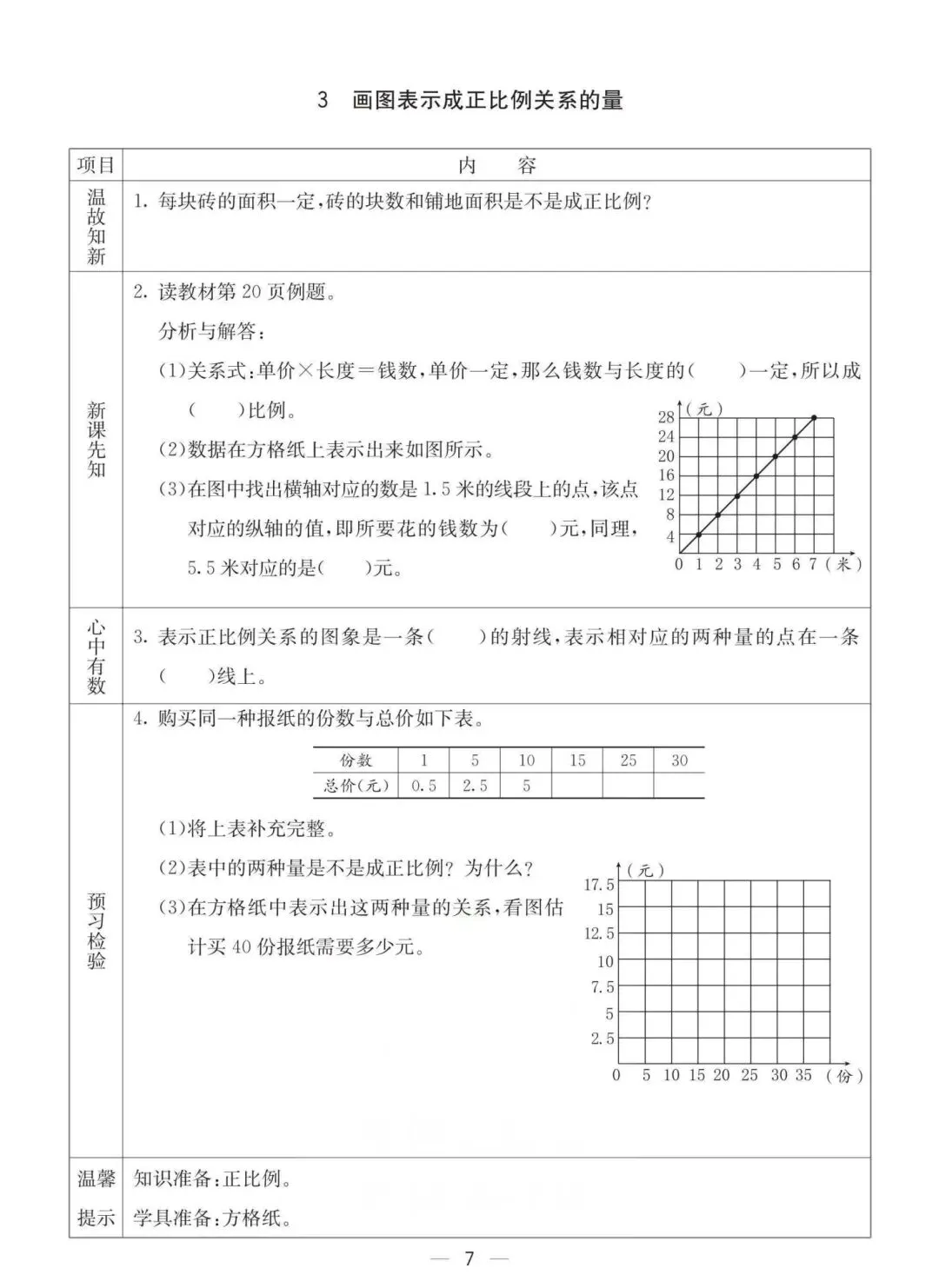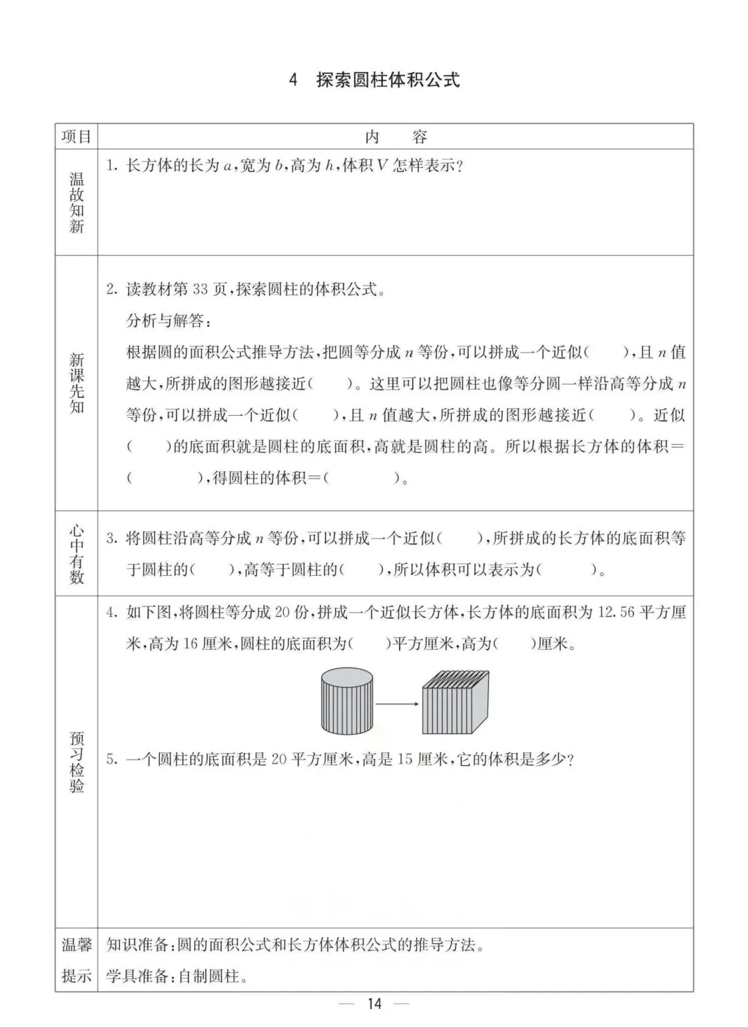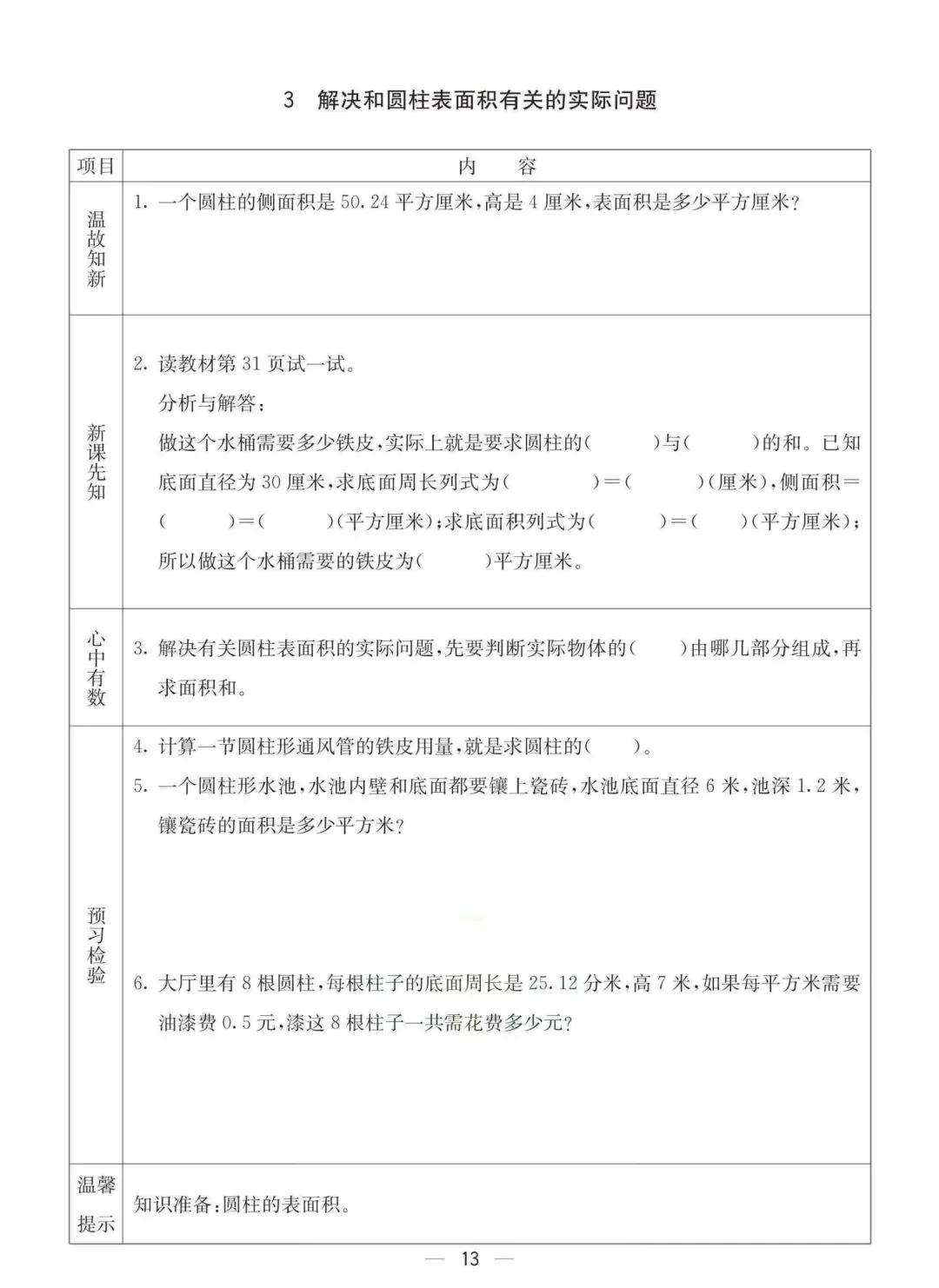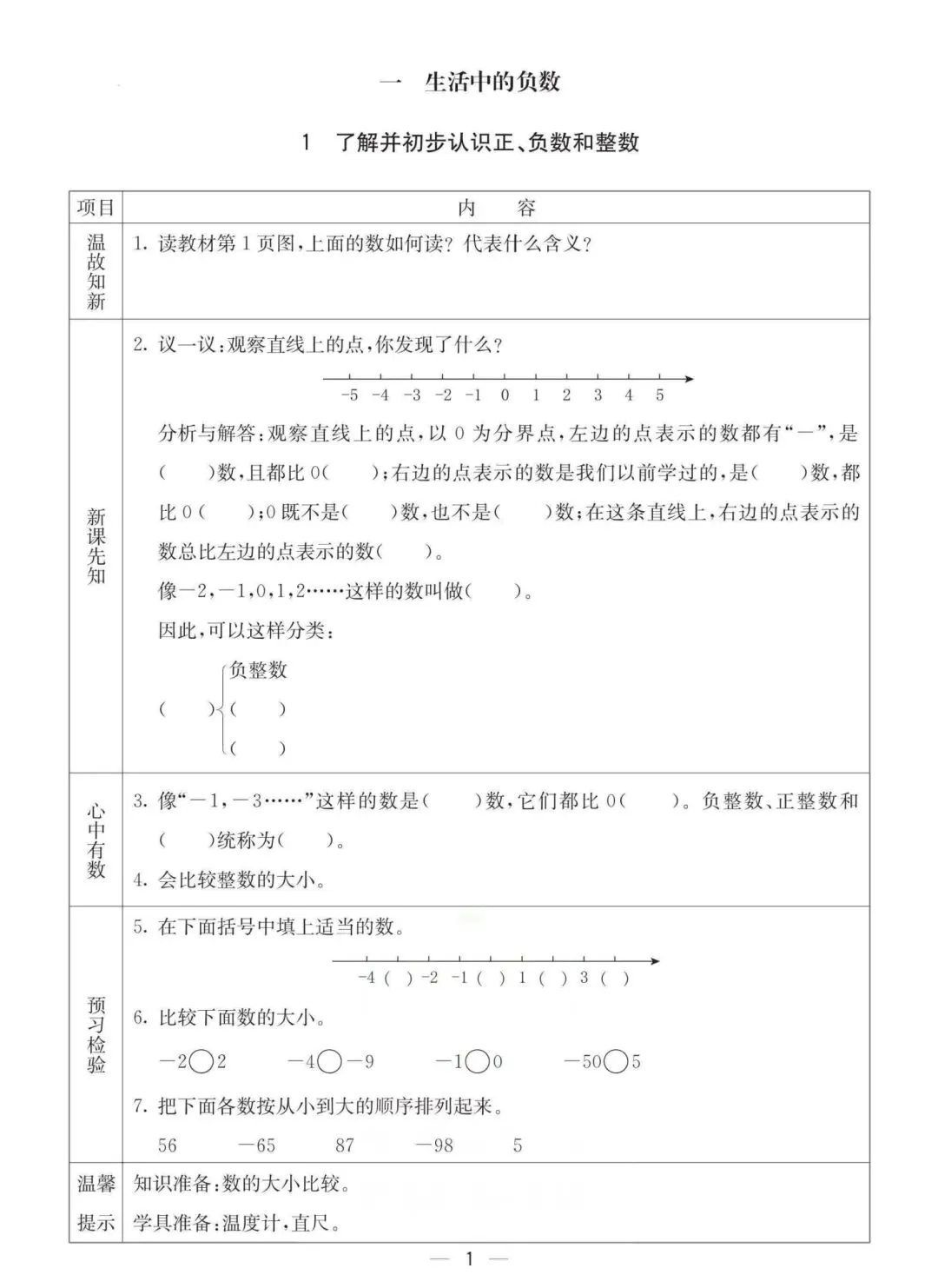 六年级下册冀教版数学《课时预习卡》,电子版可打印