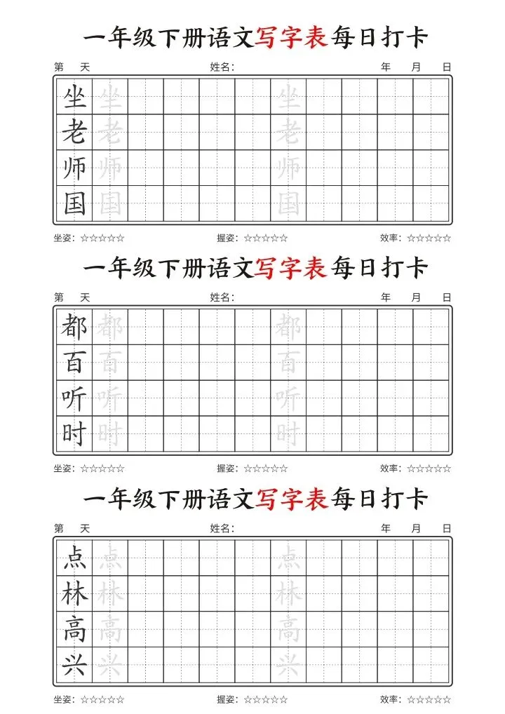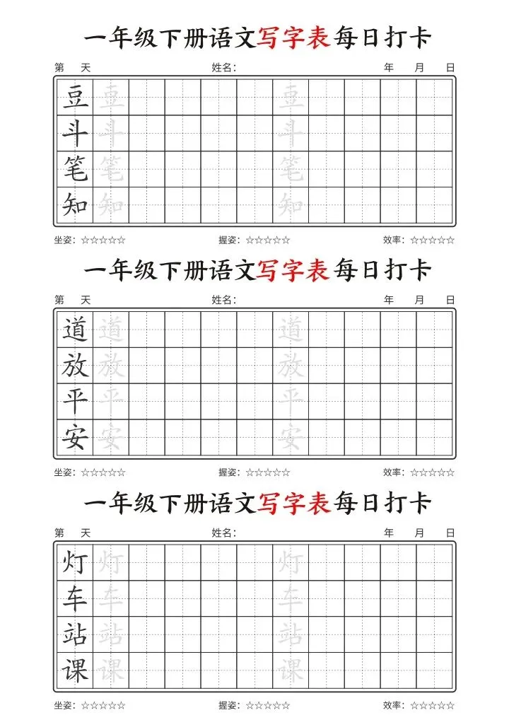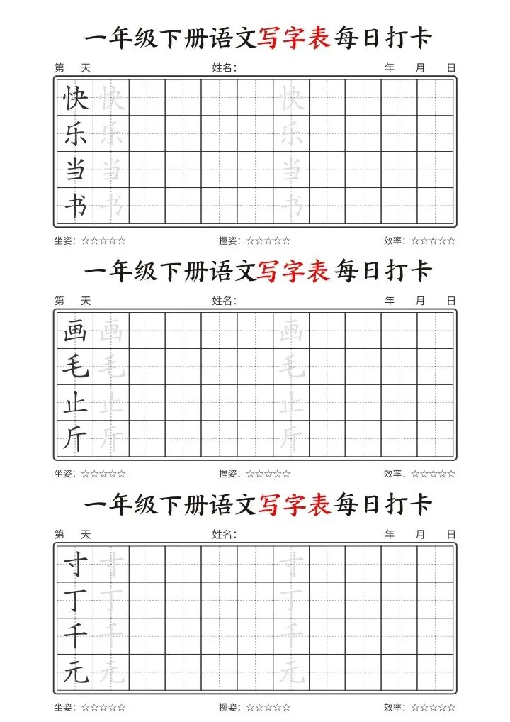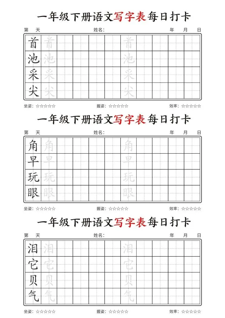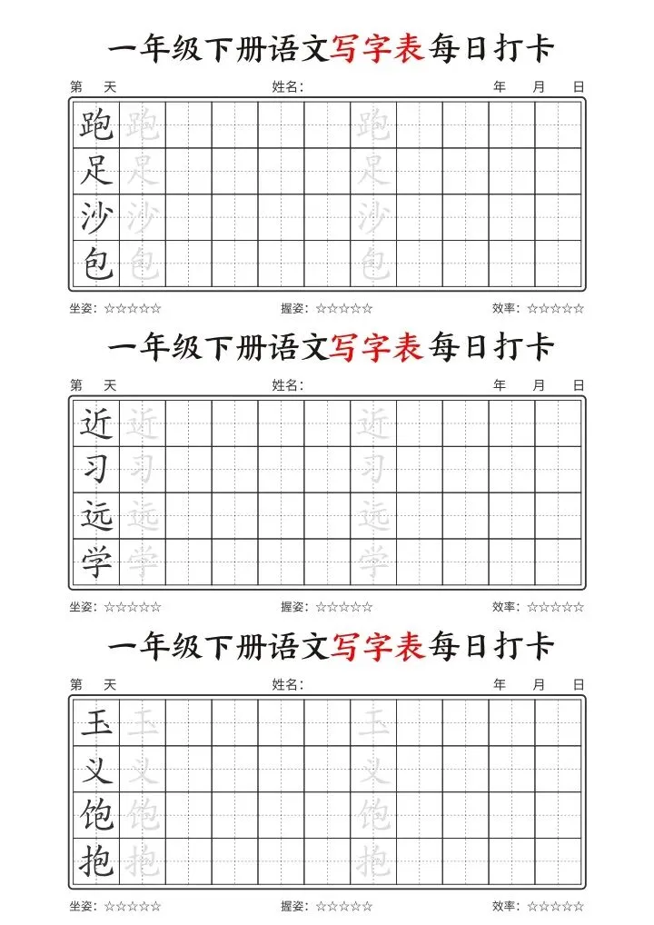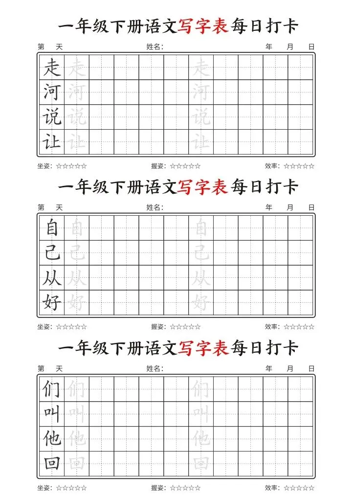 26年春一年级下册语文《写字表每日打卡》电子版可下载打印
