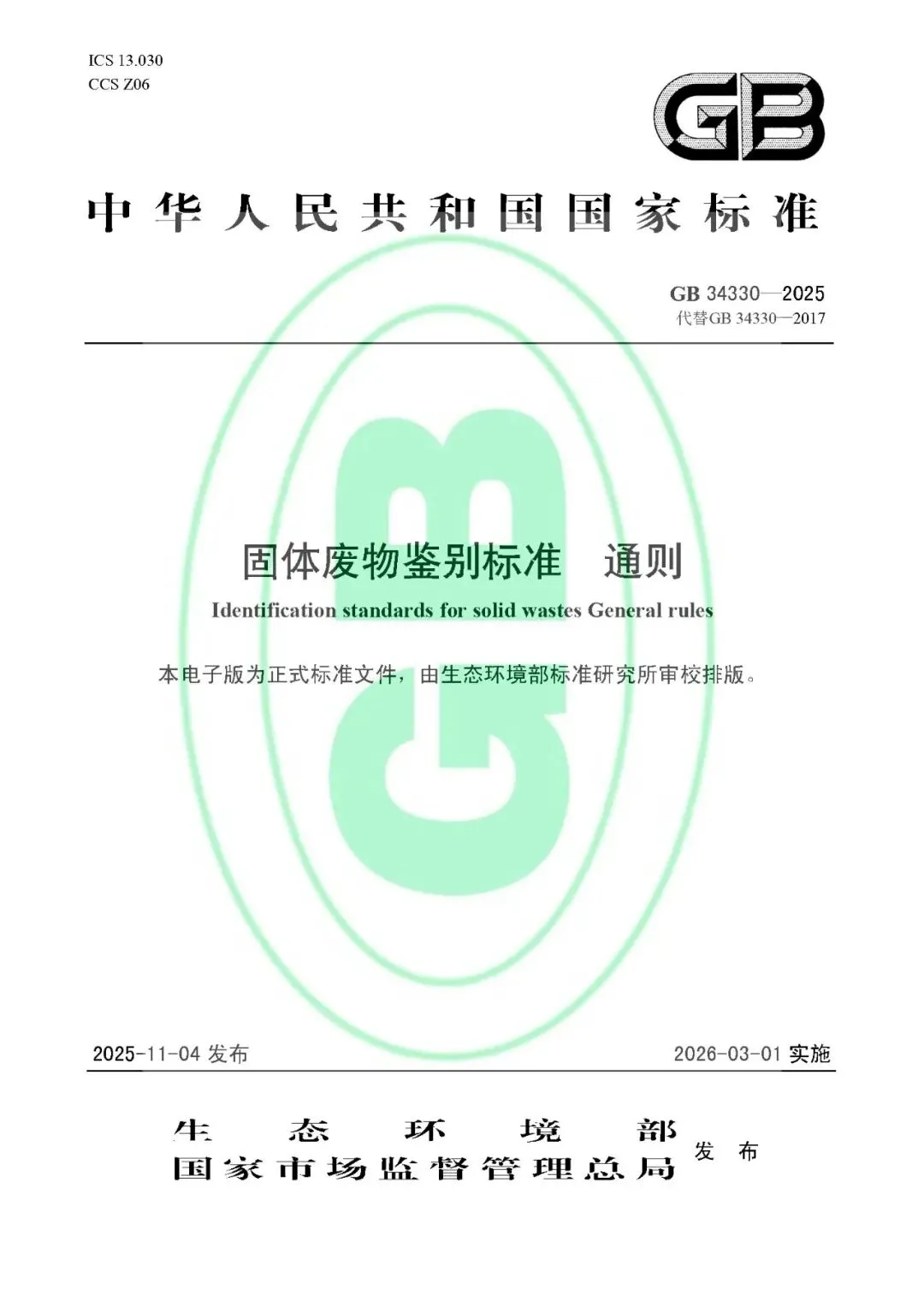 标准号:GB 34330-2025