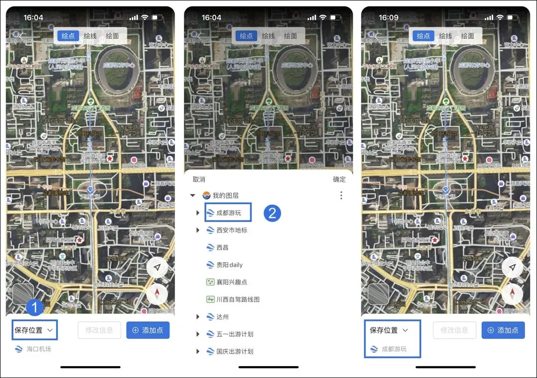 要素绘制过程中,可以通过点击【保存位置】切换图层;
