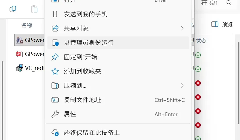 3、第2步完成安装后,鼠标右键选择“以管理员身份管理运行”GPower3.19.7程序。