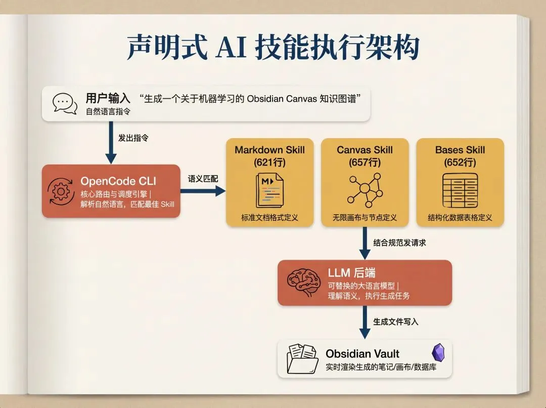通用大模型不懂 Obsidian 的专有语法。[[双链]] 不是标准 Markdown,> [!tip] 不是普通引用,.canvas 文件是 JSON 不是随手画的涂鸦。你让 AI 帮忙,它写出来的东西看着像那么回事,但 Obsidian 不认。