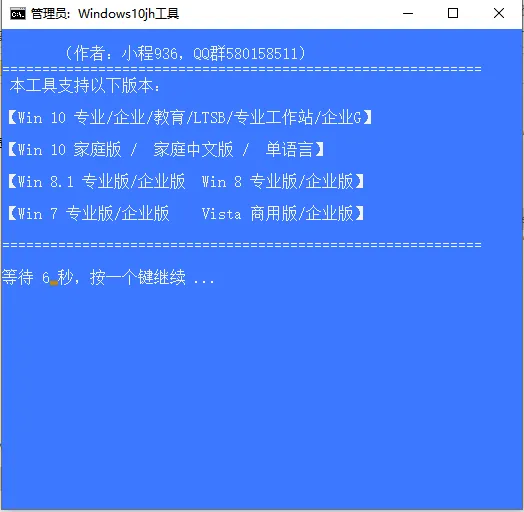 1、下载得到压缩包进行解压,双击“Windows10jh工具.bat”运行,按任意一个键继续.