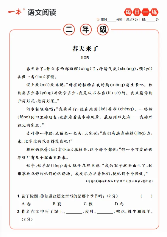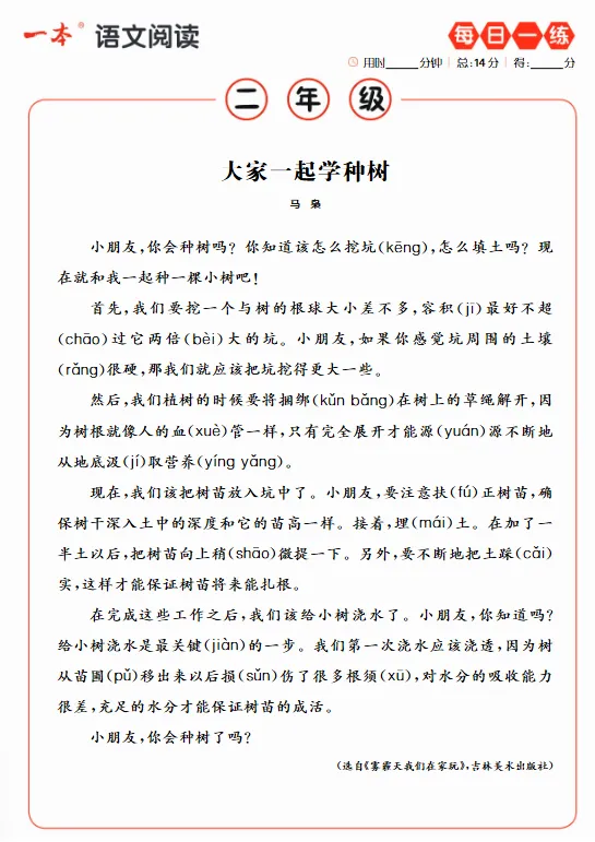 新的二年级(下)语文阅读每日一练,电子版可打印