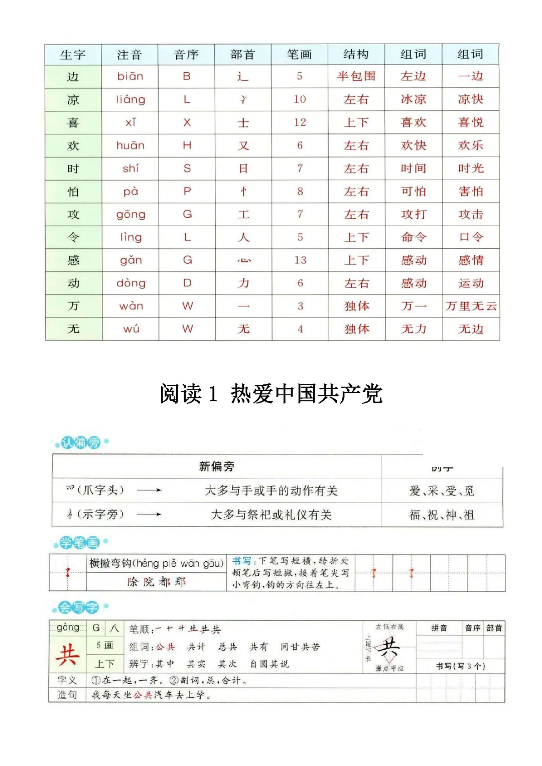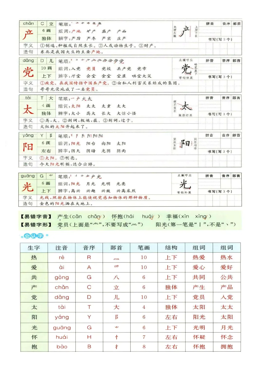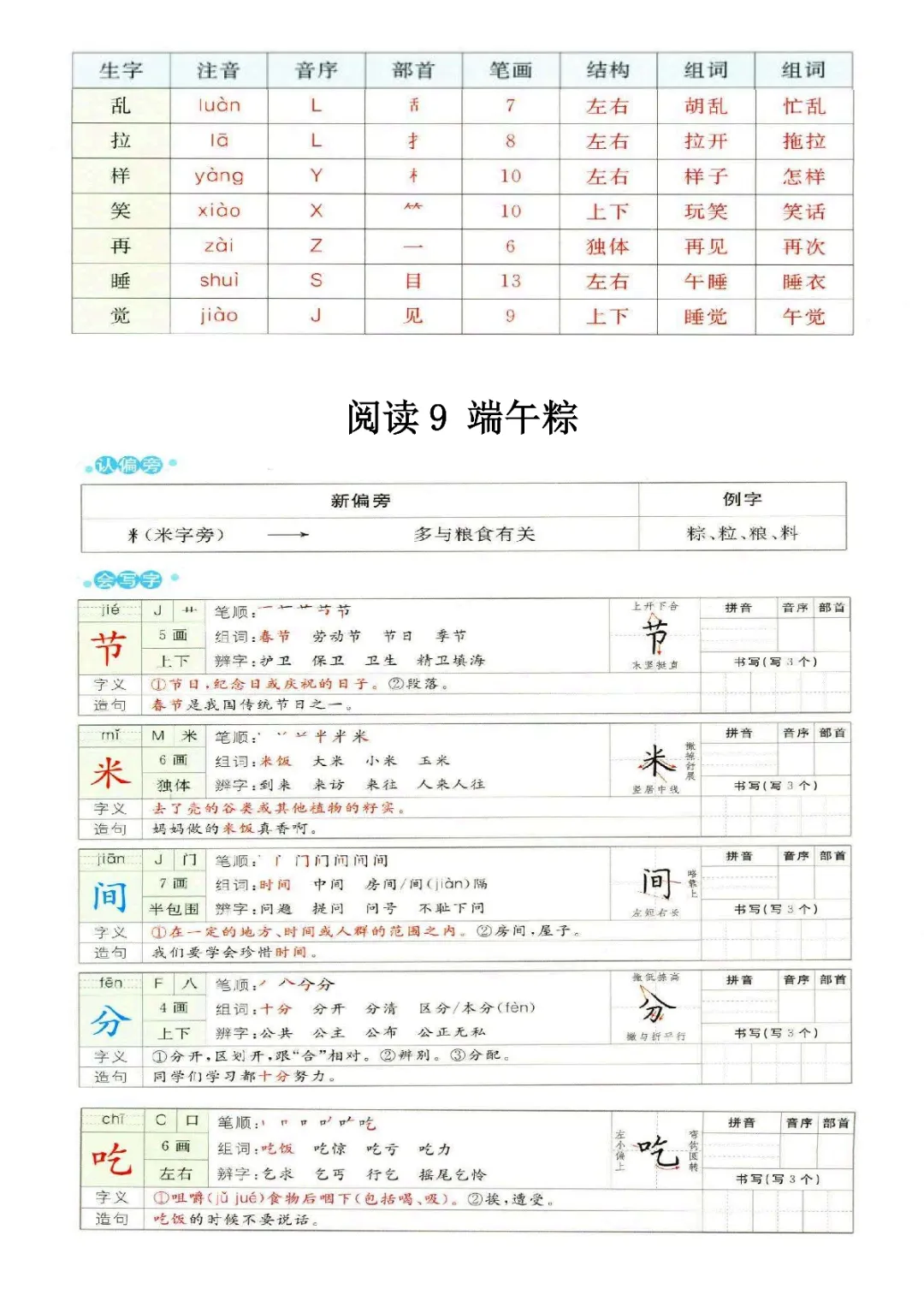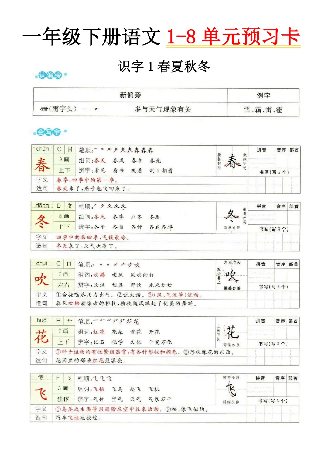 一年级下册语文1-8单元预习卡(电子版可打印)
