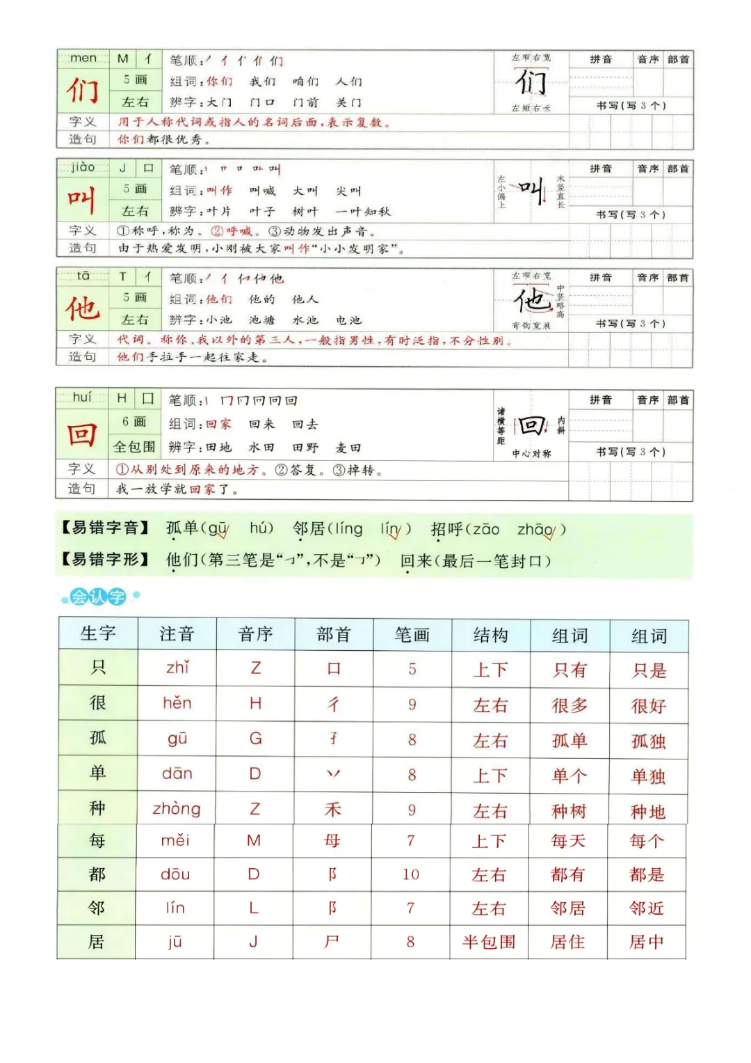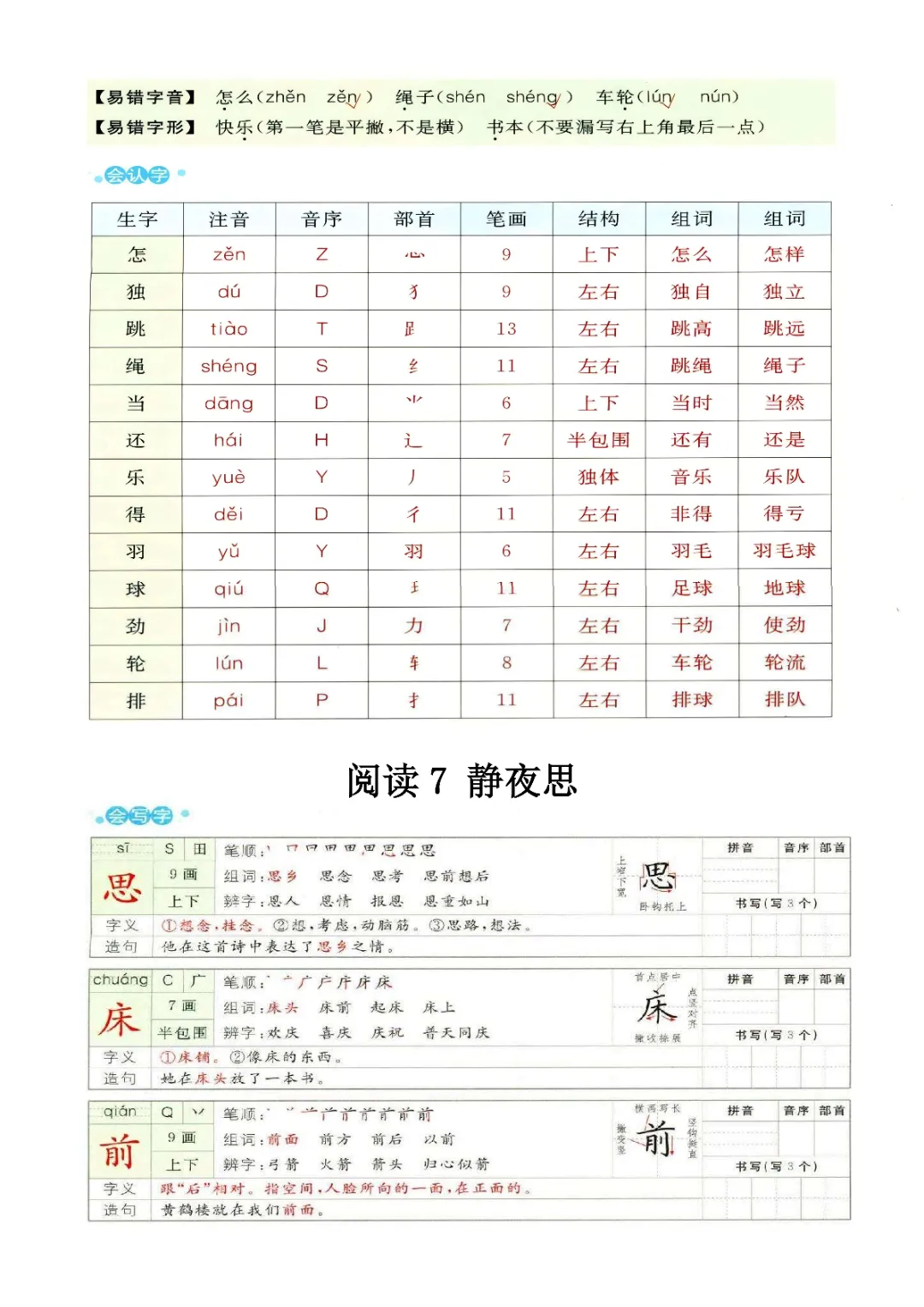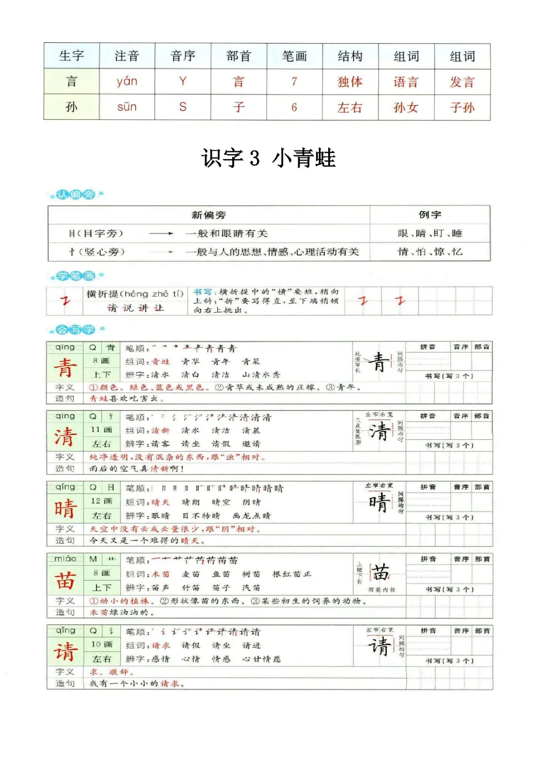 一年级下册语文1-8单元预习卡|电子版可打印